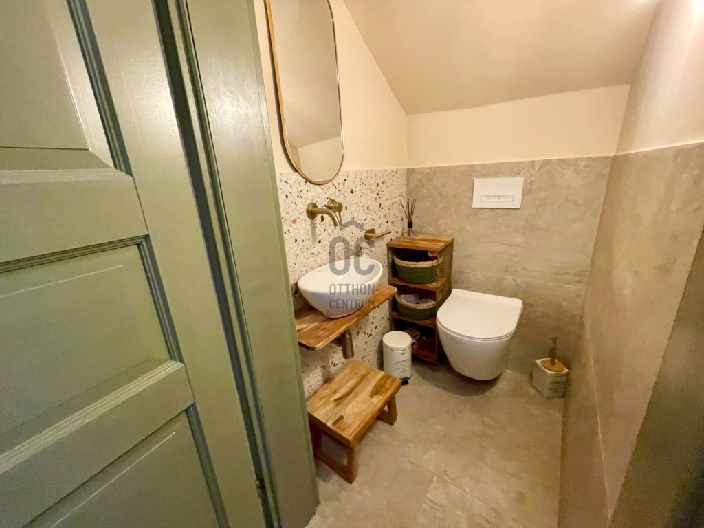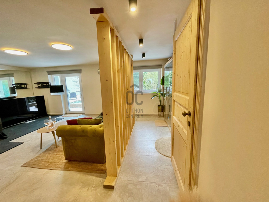 • Exkluzív burkolatok: Az alsó szinten mindenhol magas minőségű, igényes hideg- és melegburkolatok találhatók. A beltéri lépcsőre a földszinti burkolat a rendelkezésre áll.