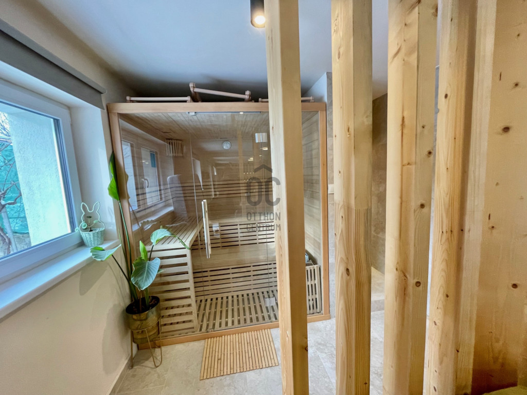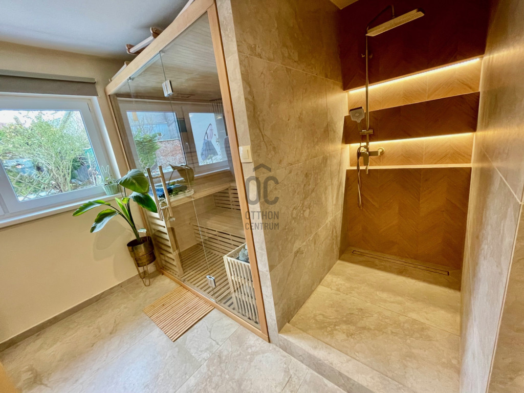 • Wellness otthon: A lakásban egy saját szauna is helyet kapott a teljes ellazulásért.
