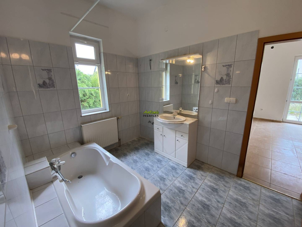 A nagyobbik épület 141 m² fűtött lakóterű, 48,5 m² pincével és beépíthető tetőtérrel rendelkezik. Található benne előszoba, tágas nappali, három hálószoba, két fürdőszoba és külön WC. A melegvizet napkollektorok biztosítják, így a rezsiköltségek is kedvezőbbek.