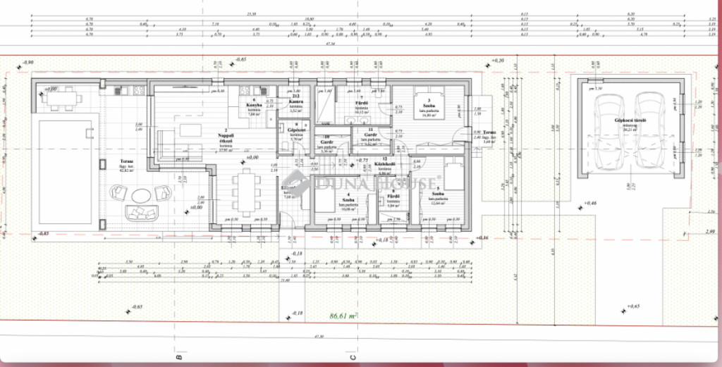Medencével és épített garázs felára 15 000 000 Ft.