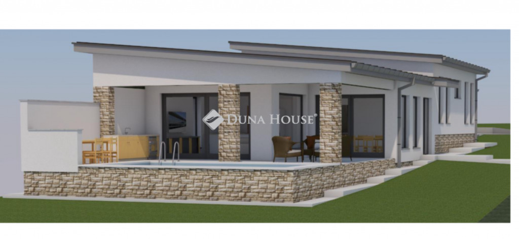 - Tágas és napfényes amerikai konyhás nappali, 42 m2-es hangulatos terasz és medence kapcsolattal. A medence 8x 3,5 méteres.Fedett terasz részen pedig épített sütögető rész.