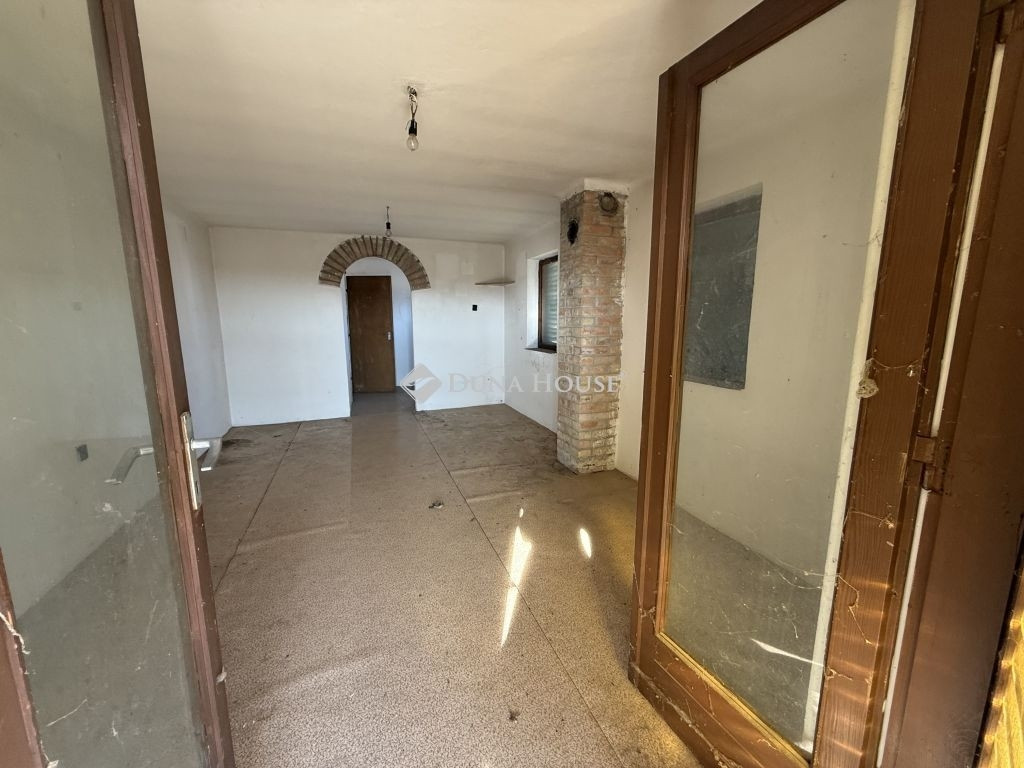 Az épület sóskúti kő és tégla építésű. Földszinten tároló és boros pince, emeleten panorámás, hangulatos fedett terasz, 25 m2 egybe légtér, és két kisebb helyiség található , ahol adott lenne egy konyha és egy fürdő mivel jelenleg fürdő nincs kialakítva, de áram van az ingatlanba.