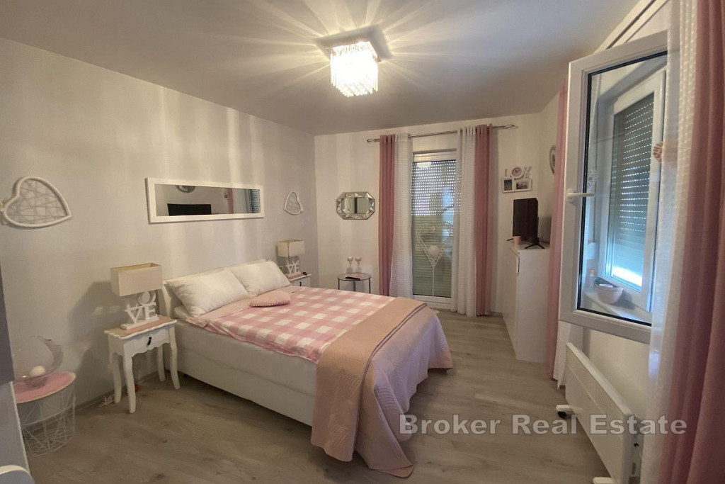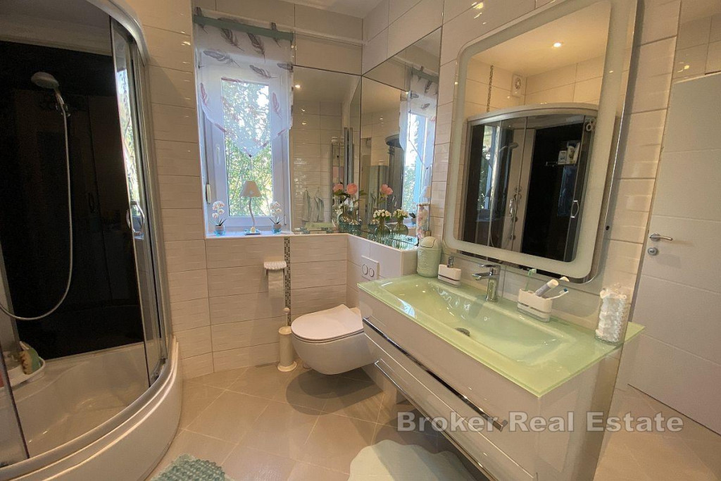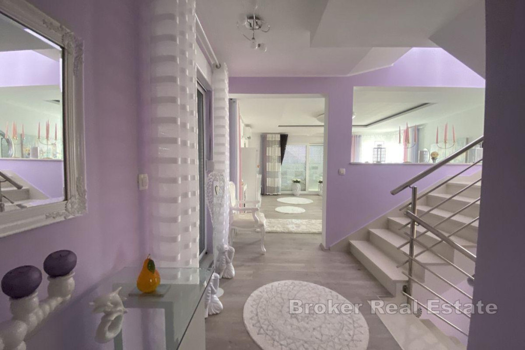 An exclusive offer of a modern detached house located in a prime position with breathtaking, open views of the sea. This elegant property spans three residential levels, with a total gross area of 319 m². The ground floor offers a welcoming entrance leading to a spacious kitchen with a dining area, a modern bathroom, and a comfortable bedroom. The internal staircase leads to the first floor, where a spacious living room opens onto a large terrace, perfect for relaxing while enjoying the spectacular sea views. On this floor, there is also a second large bathroom and another spacious bedroom. The rooftop terrace, accessible via the internal staircase, is the perfect place for enjoyment. With its panoramic sea views, it can become an ideal space for social gatherings, sunbathing, or unwinding in a jacuzzi. The house’s basement features two large rooms that can be customized according to the future owner’s desires, whether for additional bedrooms, a fitness area, or a wine cellar. The garden is carefully landscaped, fully enclosed, and provides privacy and space for gatherings with an outdoor fireplace. Four parking spaces are also available. The location is extremely convenient – just 700 meters from the sea, 950 meters from the nearest store, and only 25 kilometers from the airport. BROKER REFERENCE ID:2044/29