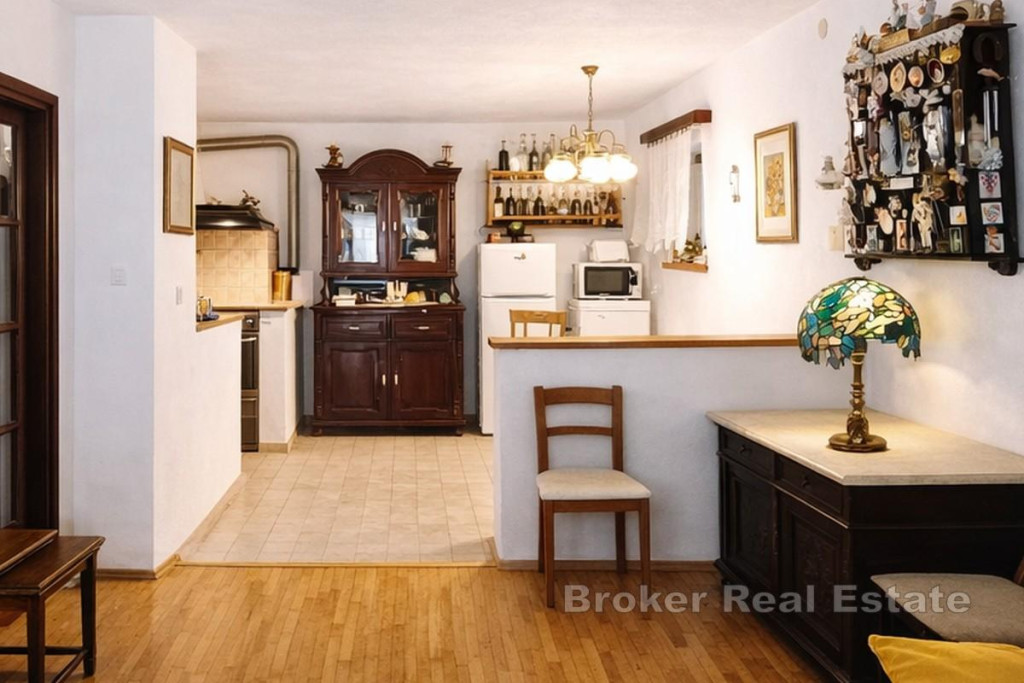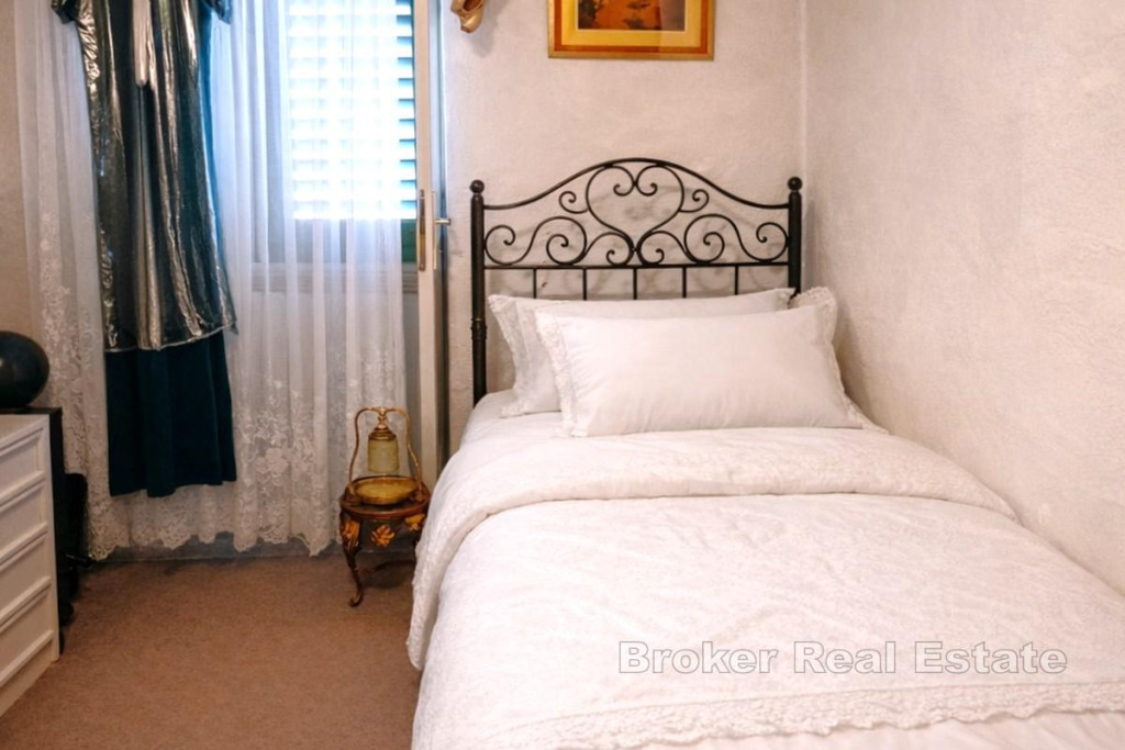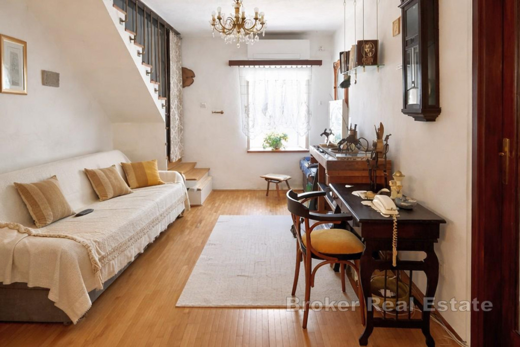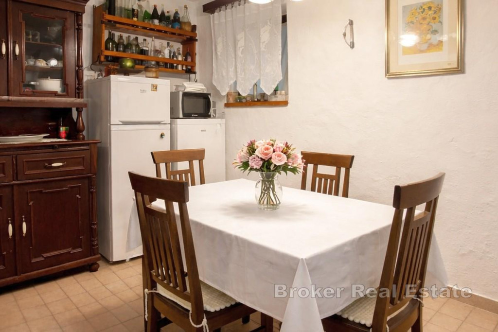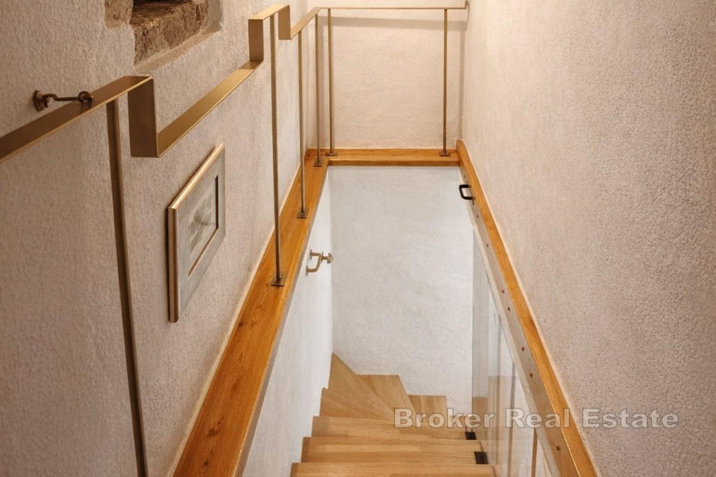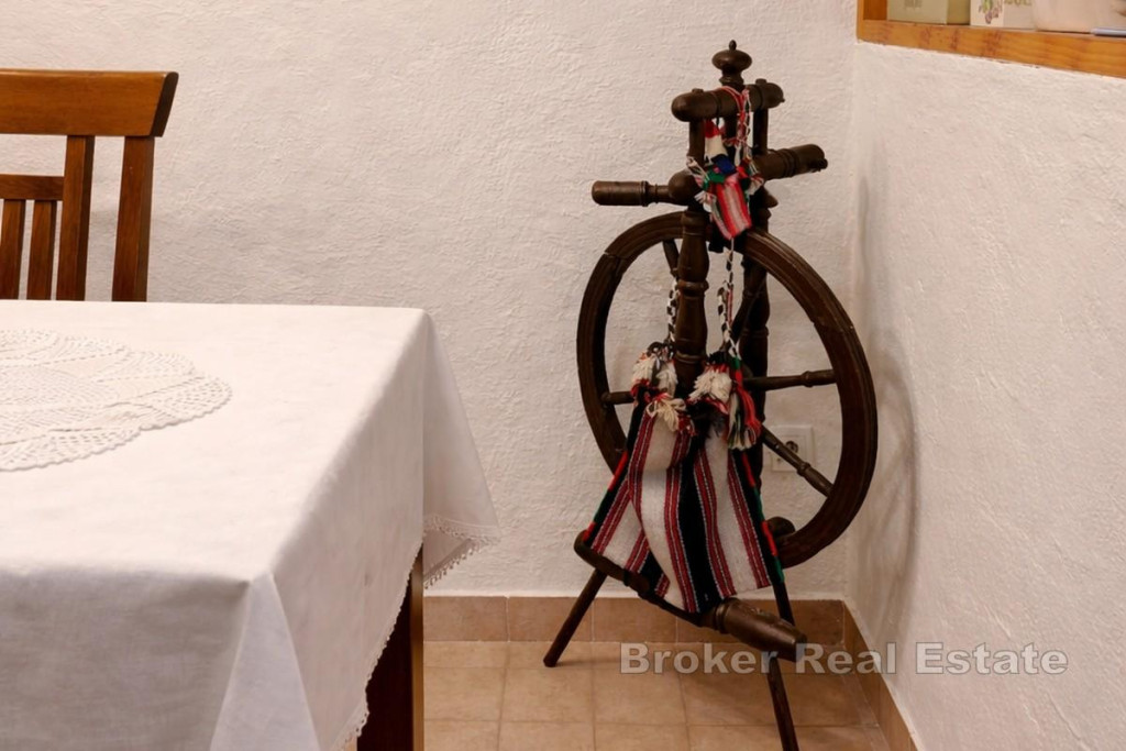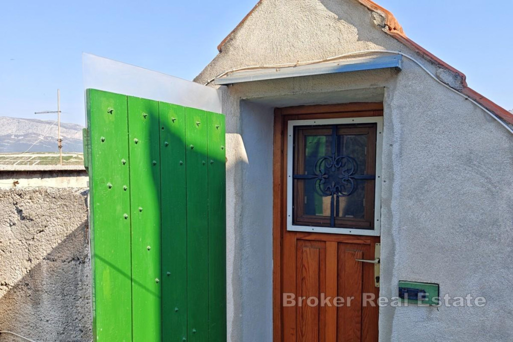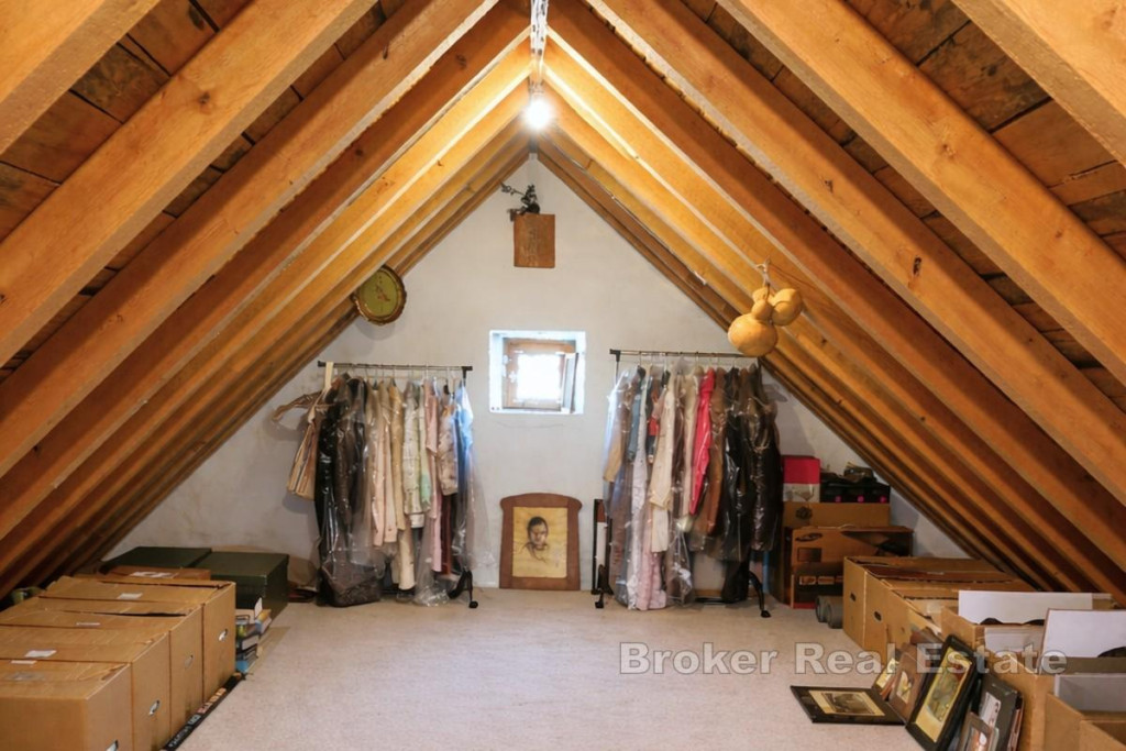 We offer a completely renovated stone house that combines authentic Dalmatian character and modern functionality, located in a quiet and well-connected location in the immediate vicinity of Split. The property has been thoroughly renovated, with a new concrete slab on the ground floor, a completely new attic with a wooden-beam structure, a new roof, all electrical installations and carpentry replaced, ensuring long-term quality and a pleasant stay. The total living area is 110 m2, and the house is arranged over several floors. The ground floor is designed as an open living space that includes a kitchen with a dining room and a living room, with an additional bathroom. On the first floor there is a hallway that connects three bedrooms and a balcony, while above there is a furnished attic as a single unit, which provides additional space for various purposes. The house is equipped with a wood heating system and radiators and is also air-conditioned, which allows for a comfortable stay throughout the year. In the extension of the main house there is an additional building that offers significant potential. On the ground floor there is a woodshed of 30 m2, while the first floor includes a hallway, a room and a bathroom. Above there is a terrace of 30 m2 with the possibility of building an additional floor, which makes this property particularly interesting. In front of the house there is a spacious yard with parking for up to three cars, along with two smaller terraces and three cascading gardens with a total area of about 20 m2, which further complement the outdoor space. The location of the property is extremely practical for everyday life, with an elementary school, kindergarten, health center and shops in the immediate vicinity, while Stobreč is only 2 km away, and the city of Split itself is about 6 km away. BROKER REFERENCE ID:2051/67