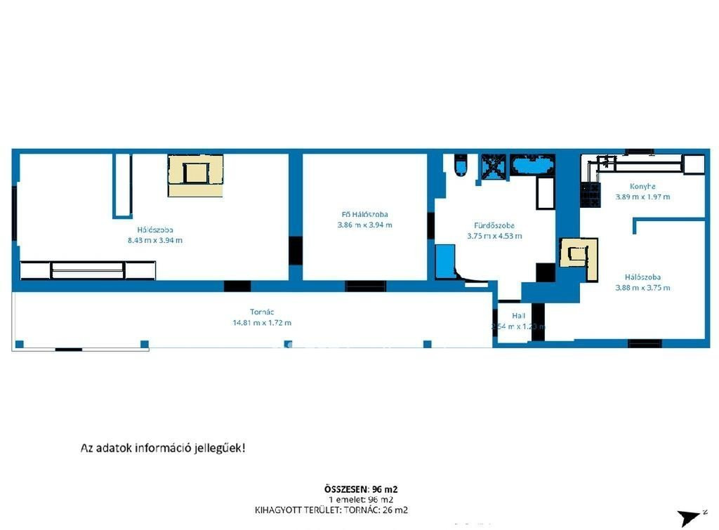 A ház két bejárattal rendelkezik, így akár két generáció számára is jól használható, vagy külön funkciókra osztható. A fürdőszoba kialakítása különösen praktikus, tágas és több irányból megközelíthető. A telek két utcáról is elérhető, ami ritka és kifejezetten előnyös adottság.