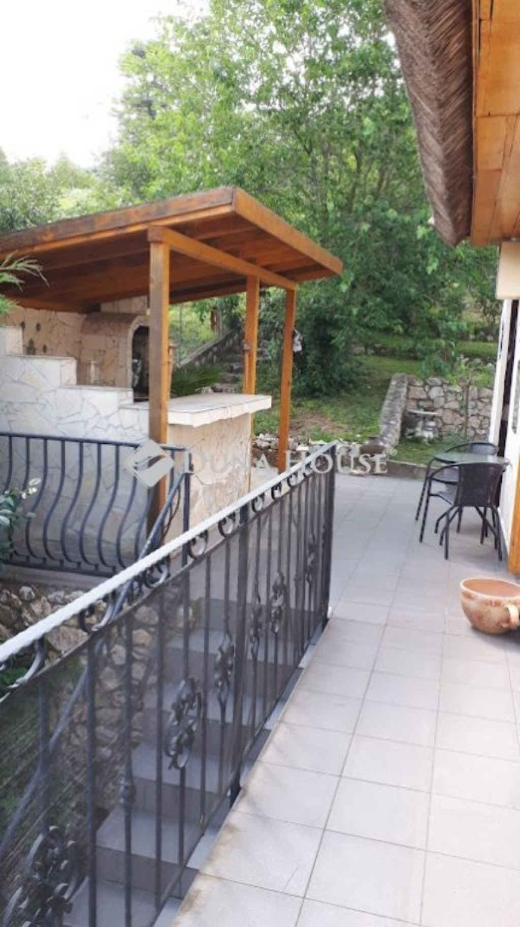 A telek hátsó része lépcsős pihenőkert. A délkeleti fekvésű, tágas teraszról csodálatos panoráma nyílik a Velencei - tóra.