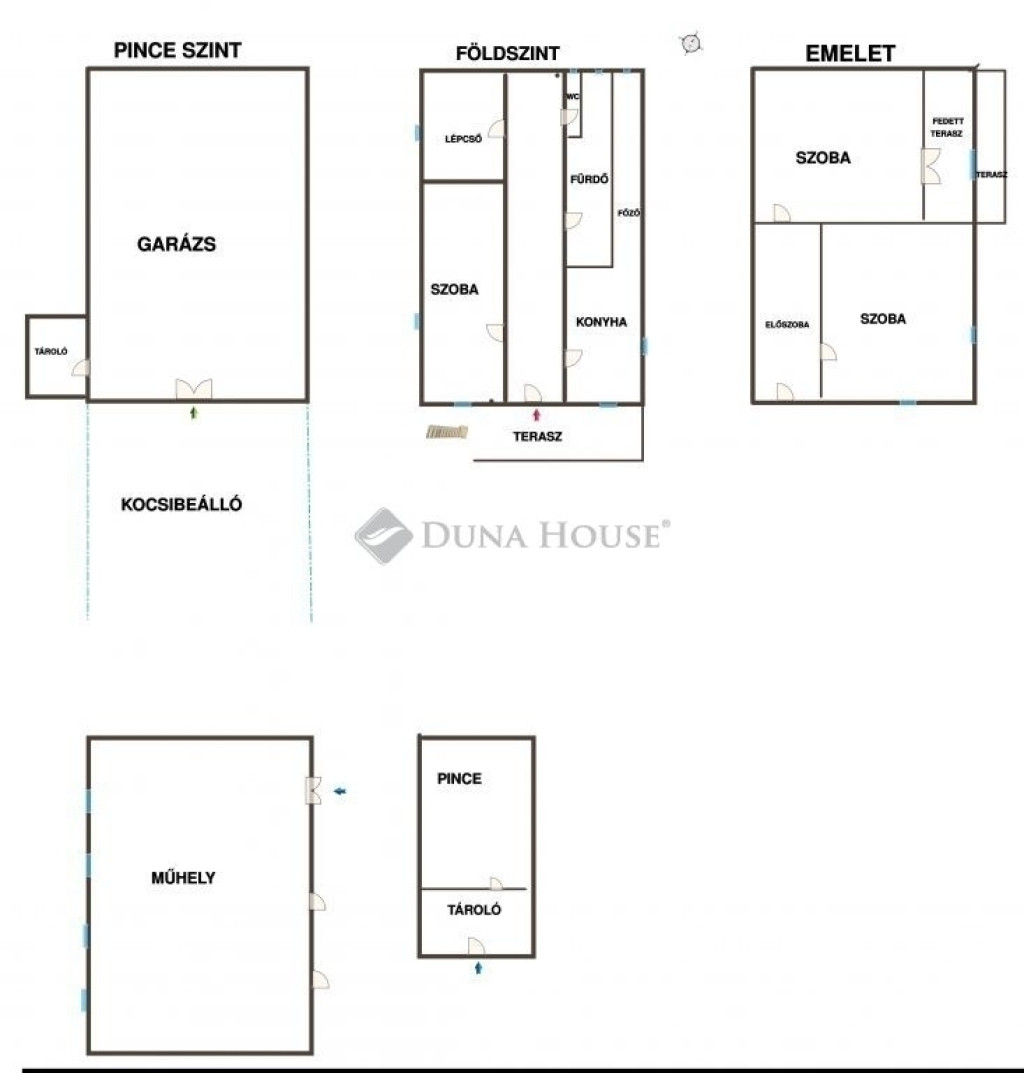 Pince, garázs és több tároló helyiség