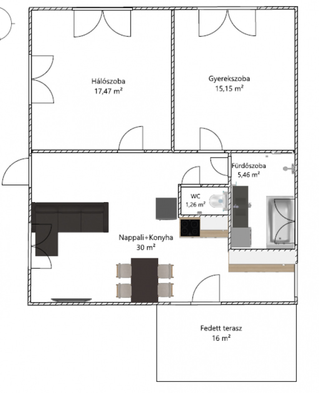 •16 m² fedett terasz