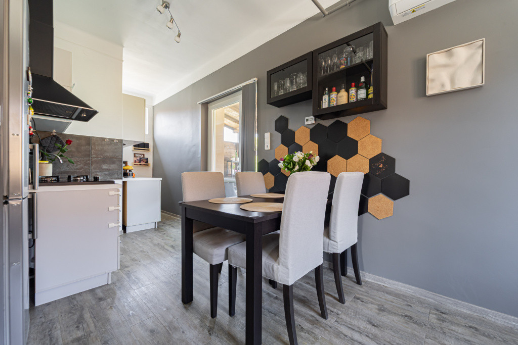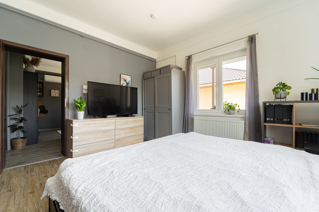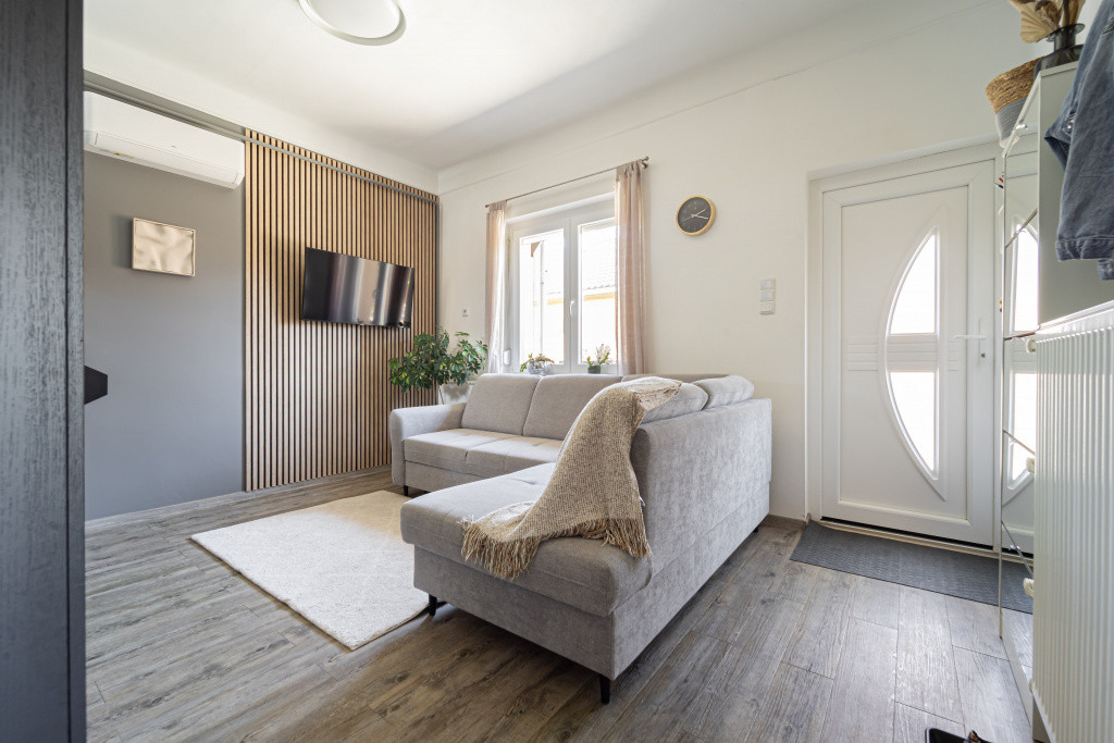 Eladó egy igényesen felújított, önálló téglaépítésű családi ház, ahol minden részlet arra törekszik, hogy kényelmes, modern és letisztult életteret biztosítson. A felújítás során minőségi anyagokat használtak, a ház egészét összehangolt színvilág és egységes, időtálló burkolatok jellemzik, ami már belépéskor kellemes, harmonikus hangulatot teremt.