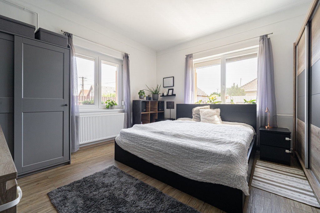 A 68 m²-es otthon két külön nyíló szobából és tágas nappali–konyha–étkező térből áll, ahol a természetes fény és a modern kialakítás igazán hívogatóvá teszi a tereket. A hőszigetelt, redőnnyel és szúnyoghálóval felszerelt nyílászárók, valamint a biztonsági bejárati ajtó a komfort és biztonság érdekében kerültek beépítésre.