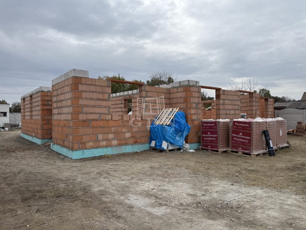 Az épület Porotherm P30N+F téglából, betonkoszorúval és fa födémes tetőszerkezettel készül. A lábazat 10 cm vastag lépésálló polisztirol, a homlokzat 10 cm-es Austrotherm grafitos hőszigetelést kap, a vízszintes födém pedig 25 cm ásványgyapot szigeteléssel kerül kialakításra.