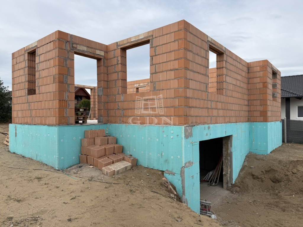 A lakószint 30 cm-es Porotherm téglából készült, 15 cm-es EPS homlokzati hőszigeteléssel, 10 cm lépésálló padlószigeteléssel és 30 cm ásványgyapot födémszigeteléssel.