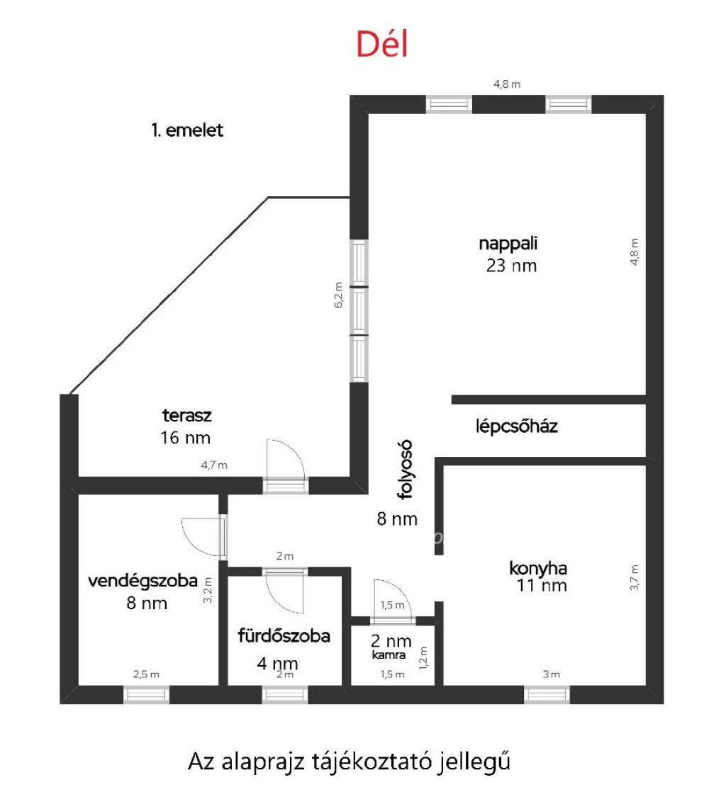 A ház alatt egy 40 nm-es GARÁZS és egy 8 nm-es tároló helyezkedik el.
