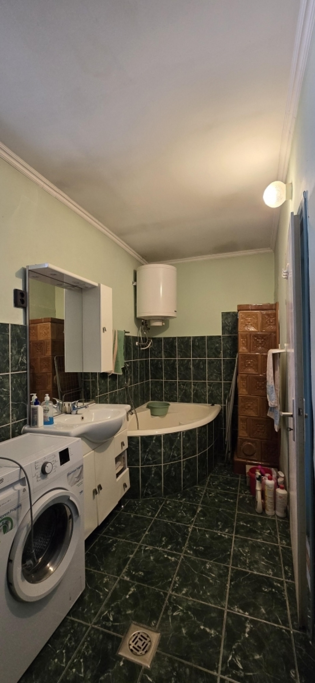 A fűtésről gázkonvektor és hangulatos cserépkályha gondoskodik, a melegvizet villanybojler biztosítja.