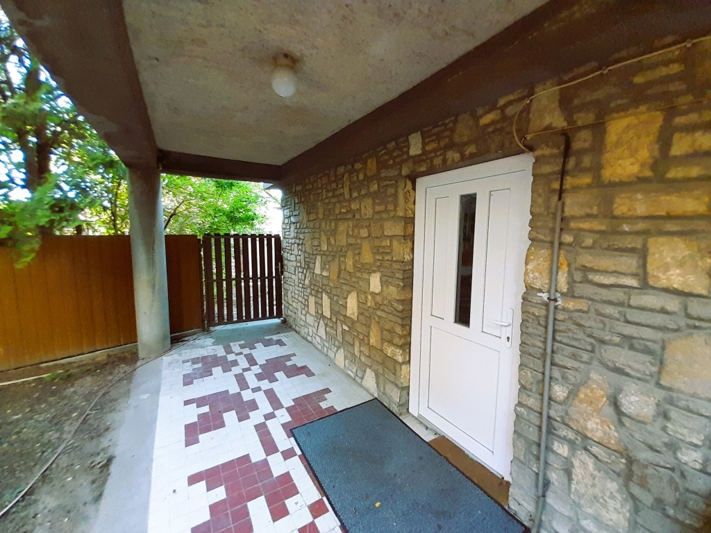 Udvaron 8 m2-es fedett kerti kiülő, 35 m2 alapterületű 3 helyiséges tégla falazatú tároló épület, 20 m2-es fából épített garázs található.