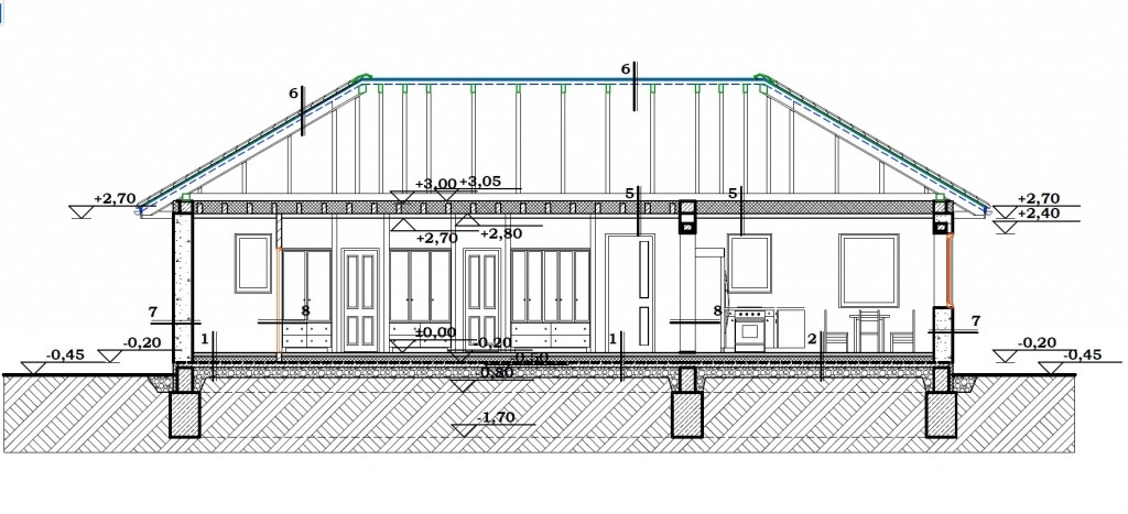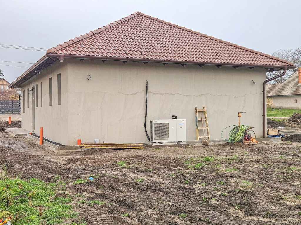 A ház fűtése hőszivattyúval, padlófűtéssel készül.
