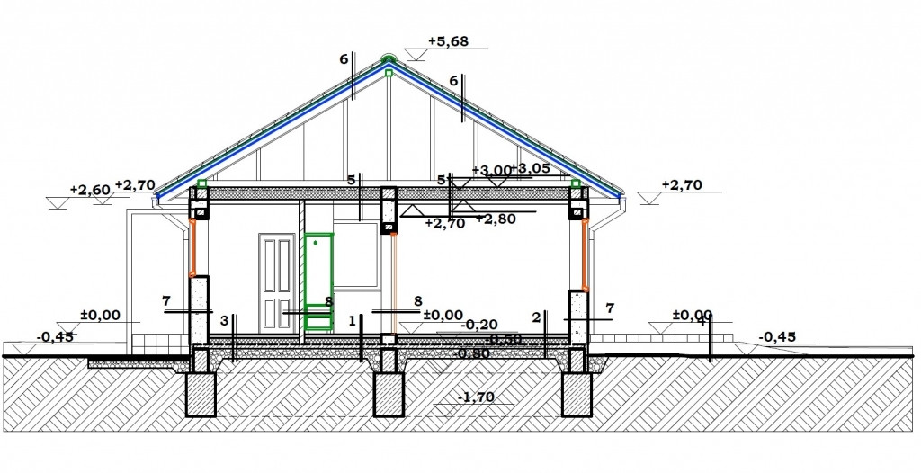 A homlokzati falak 38 cm vastagok, YTONG Lambda GT falazóelemekből. A belső teherhordó falak 30 cm-esek.