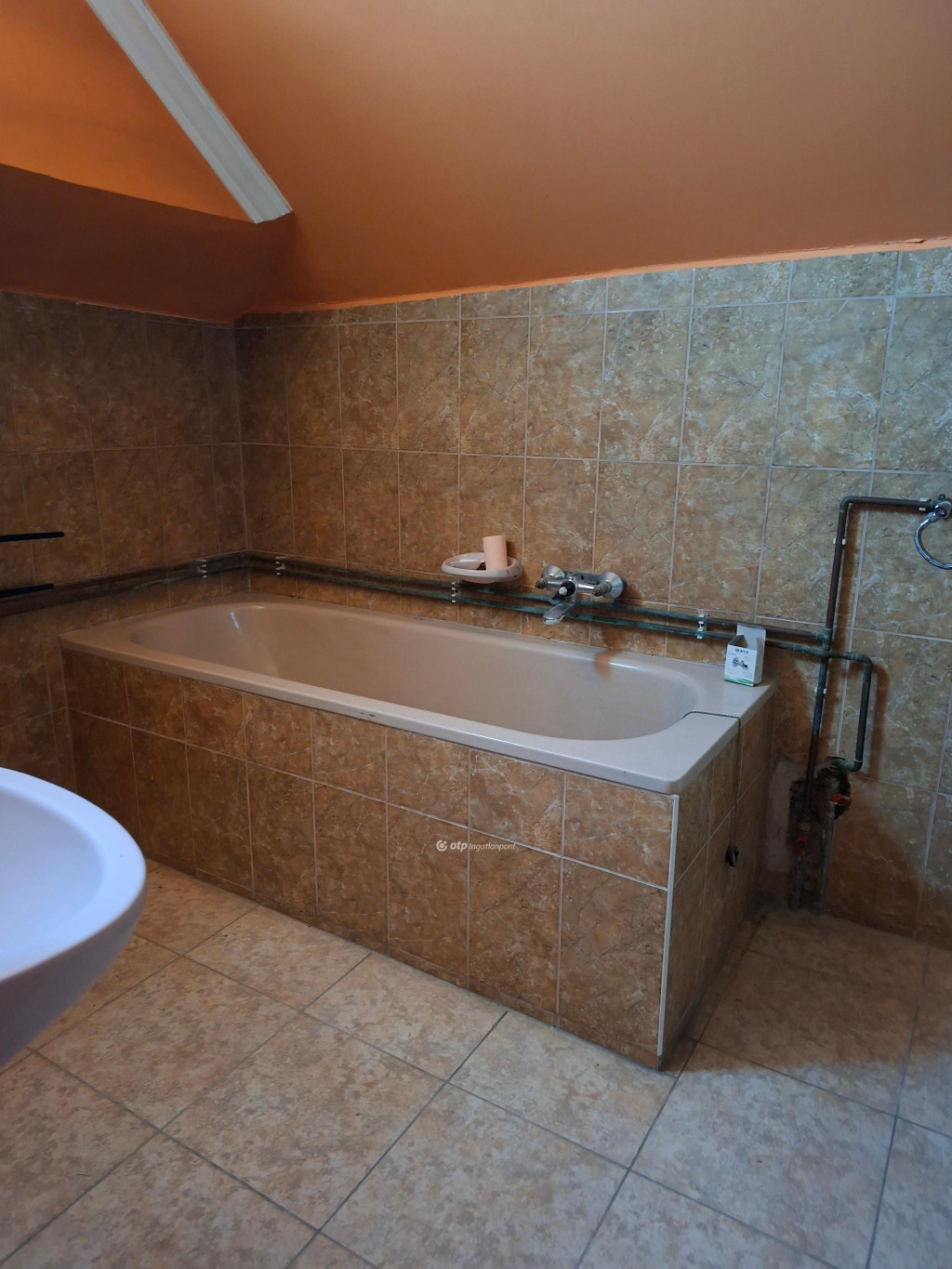 A lenti térben a fürdőszoba fürdőkáddal és zuhanyzóval kialakított, ízléses járólappal és csempével burkolt. Az emeleti fürdőszoba kádas megoldású.