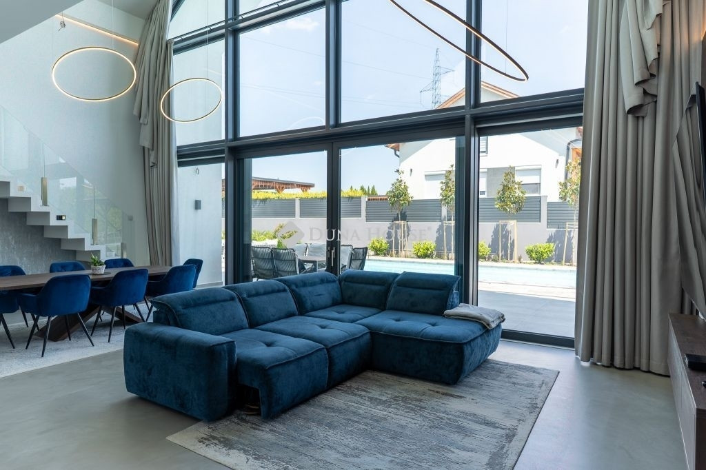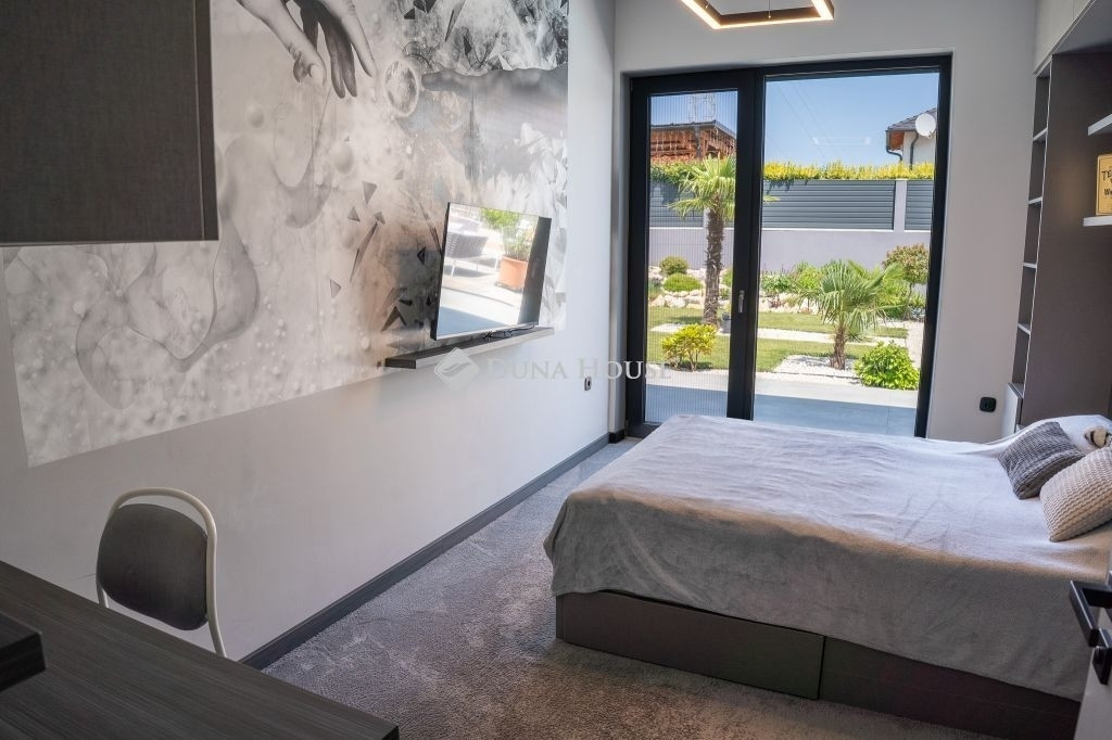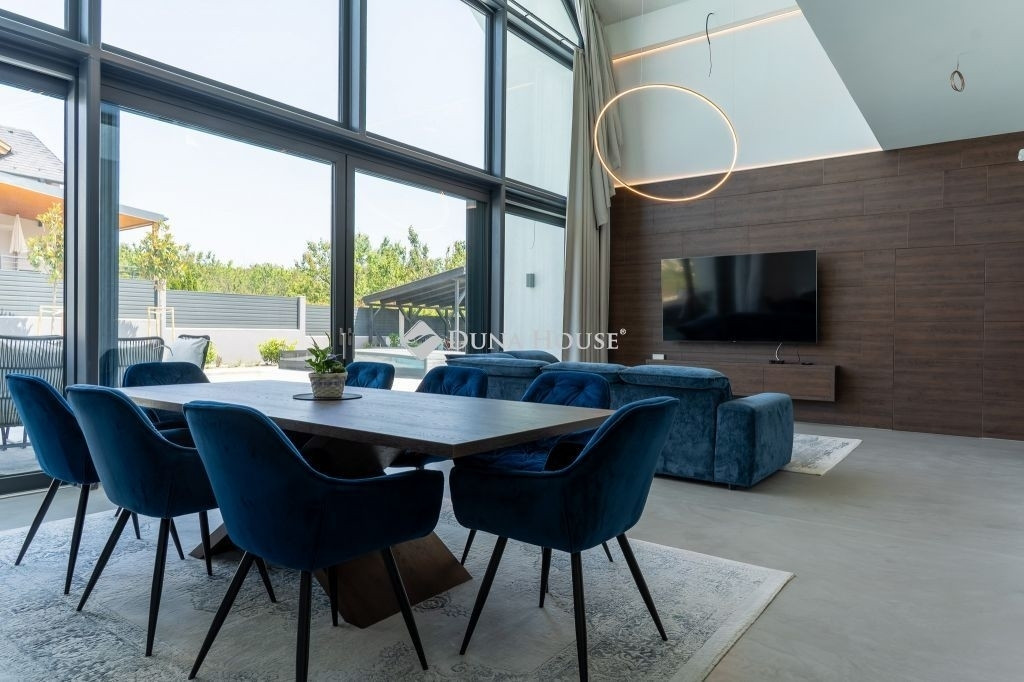 Minden részletében prémium otthonLetisztult építészet, csúcstechnológiás gépészet és természetközeli luxusélmény.Ez a 2023-ban saját részre, kompromisszum nélkül megépített, 315 m² hasznos alapterületű, egyszintes családi ház Szada egyik legexkluzívabb új építésű részén található, egy 1600 m²-es, teljesen parkosított telken, fedett, hűtött-fűtött, sósvizes medencével, és 117 m²-es burkolt terasszal, ami közvetlenül a nappaliból nyílik.⸻Kiemelt jellemzők: Korszerű, energiatudatos gépészet Levegő-víz hőszivattyú Mennyezethűtés, falhűtés, padlófűtés minden helyiségben Háromrétegű prémium nyílászárók Grafitos szigetelés (homlokzat 10 cm, tető 25 cm) Napelemek téli fűtés költsége kb. 30.000 Ft 6 hálószoba + 4 fürdőszoba + 1 vendég-WC Master bedroom: saját fürdő + teljesen körbejárható walk-in gardrób Tágas amerikai konyhás nappali nagy üvegfelületekkel Gépesített konyha gránit munkalappal, közvetlen kamrakapcsolattal Gardrób, háztartási helyiség, gépészeti tér Kétállásos fűtött garázs elektromos autótöltővel Nappali galéria funkcióval A nappali felett galéria, jelenleg konditeremként használva, benne egy egyedileg gyártott finn szauna Kulcsrakészen, teljes bútorzattal eladó Minden helyiségben egyedi beépített bútorok Letisztult, prémium belsőépítészeti megoldások⸻Kültér1600 m² kert, 117 m² terasz, 48 m² medence 4×12 m-es fedett, sósvizes medence, hűtés-fűtés rendszerrel Automata vegyszeradagoló rendszerrel felszerelve 117 m²-es burkolt terasz kültéri étkező- és lounge funkcióval Automata öntözőrendszer, sziklakert, különleges növények Játszósarok gyermekeknek, gondozott pázsit, díszburkolatok Intim, biztonságos és vizuálisan is megkomponált kertépítés⸻Lokáció Szada Új építésű, aszfaltozott, csendes utca Budapest 20 perc alatt elérhető Modern infrastruktúra, természetközeli lakókörnyezet Ideális: nagycsaládosoknak, home office-ban dolgozóknak, tudatos, prémium életstílust keresőknekEz nem csak otthon ez életminőség új szintenLetisztult design, fenntartható technológia, kompromisszummentes kényelem.Akár teljes bútorzattal, kulcsrakészen eladó.Keressen bizalommal, örömmel mutatjuk be személyesen ezt a kivételes ingatlant!