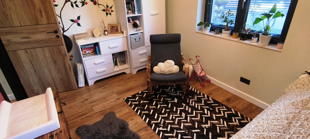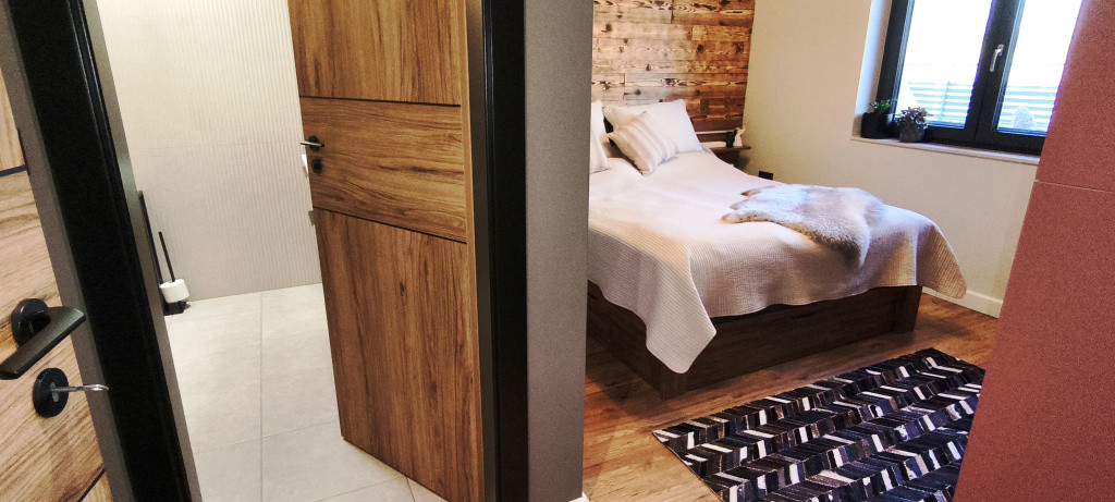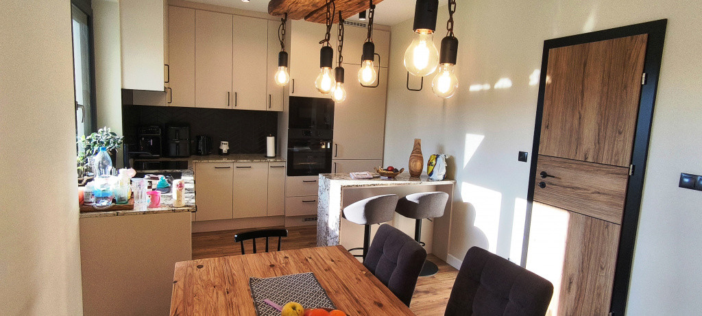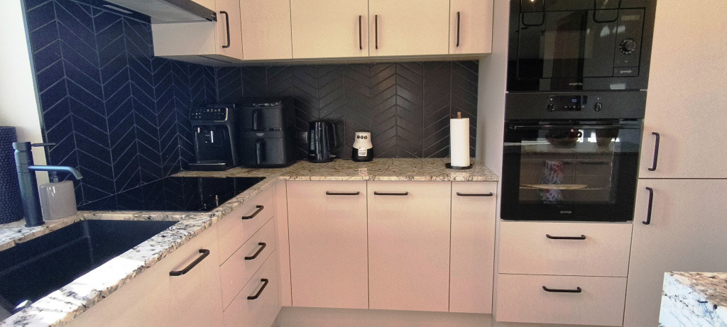 A Gorenje berendezésekkel (indukciós főzőlap, elektromos sütő, szagelszívó, beépített mosogatógép, beépített hűtőszekrény) felszerelt modern konyha az egyedi tervezésű konyhabútorral a családi ház felszerelését képezi. A házban több helyen egyedileg kivitelezett gardrób szekrényt alakítottak ki, mely szintén a vételár része.