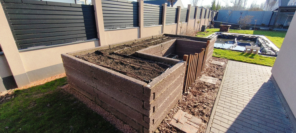 A kert nagy részt füvesített Rainbird automata öntöző és csepegtetőrendszerrel. A vízellátás saját kútról biztosított. A szép gyepet robotfűnyíró tartja karban. A 3*6 m-es robot tisztítóval ellátott, külön hőszivattyúval fűtött medence ideális kikapcsolódást nyújt a nyári napokban. Aki pedig a melegre vágyik a szaletliben kialakított prémium, üvegfalú, panorámás 4 személyes, 9 kW-os finn szauna biztosítja a feltöltődést. A fedett szaletli 40 nm-es, mellette pedig 12 nm-es tároló minden szükséges kerti szerszámnak elegendő helyet nyújt. A 6 nm saját konyhakert, a Leier elemekből készült magaságyás, csepegtető öntözéssel kiegészítve remek lehetőség nyújt a saját zöldségek termesztésére. A kertben sok díszbokrot és kisebb díszfát is ültettek a jelenlegi tulajdonosok. A medence mellett egy kerti sütögető is kialakításra került, a kertben továbbá helyet kapott egy igényesen kialakított gyermek kerti játszótér. A 19 nm teraszról a kert teljesen belátható, így a gyermekek folyamatosan látó távolságban lehetnek.