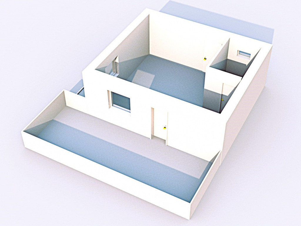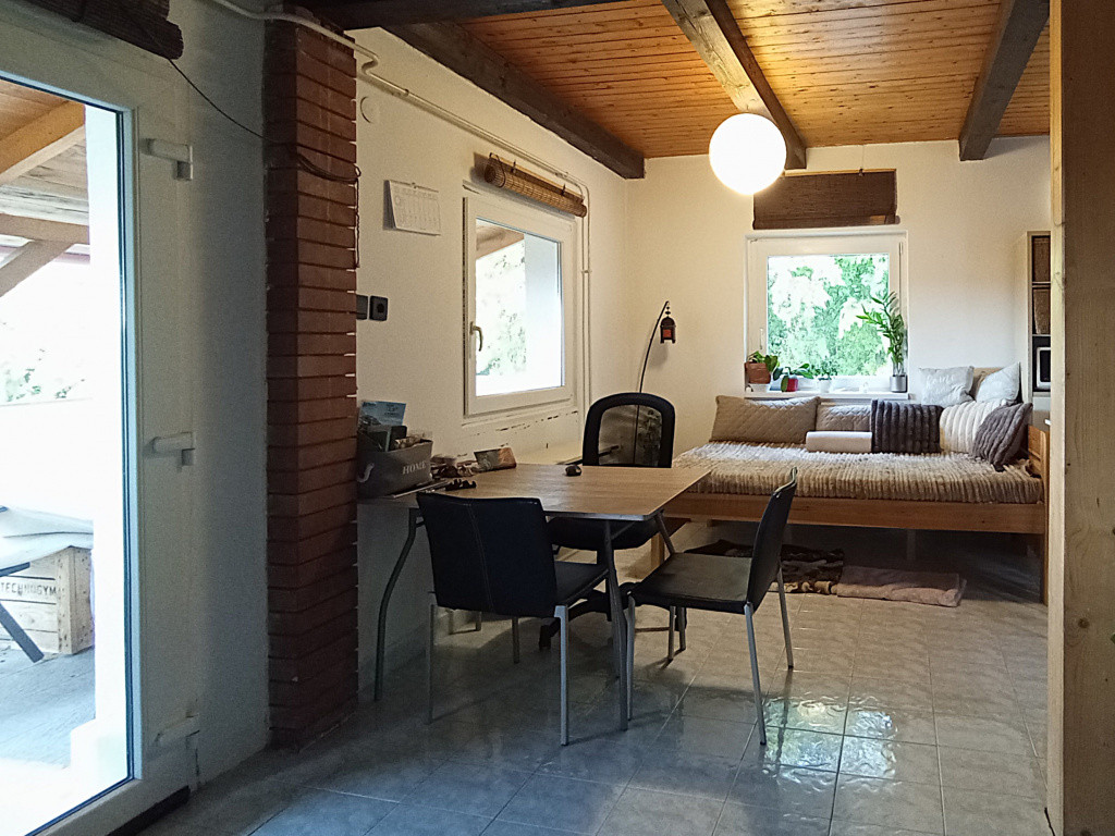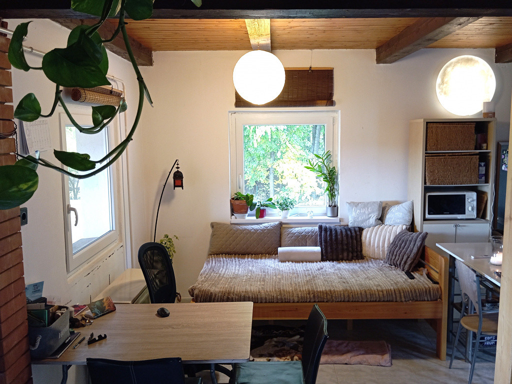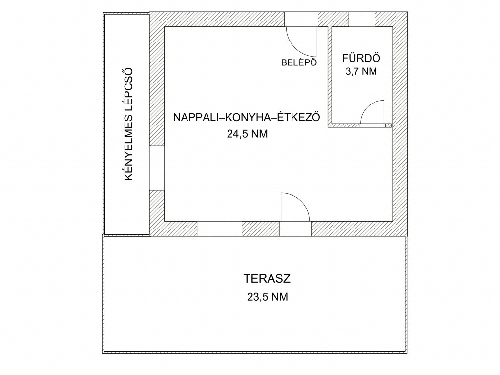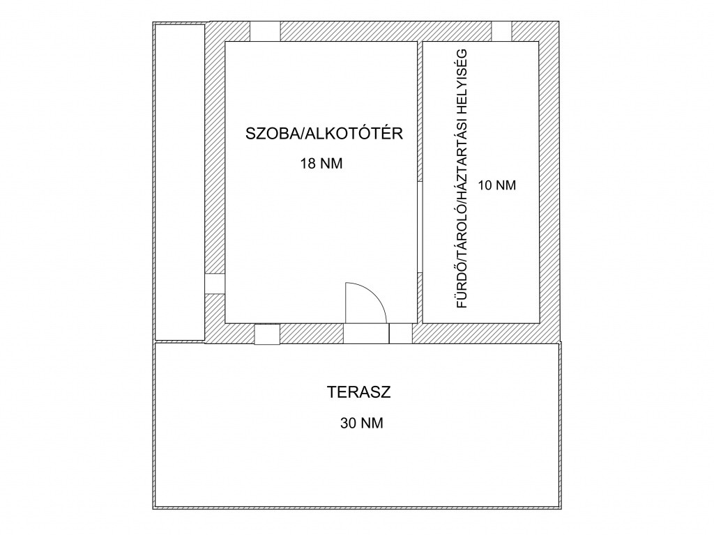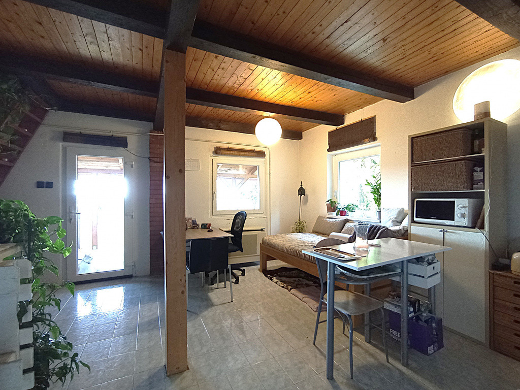 Az alsó szint teraszkapcsolatos, 28 nm-es garzon – több funkcióra ideális: iroda, alkotó műhely, kisebb szolgáltató egység céljaira remek használatot biztosít.