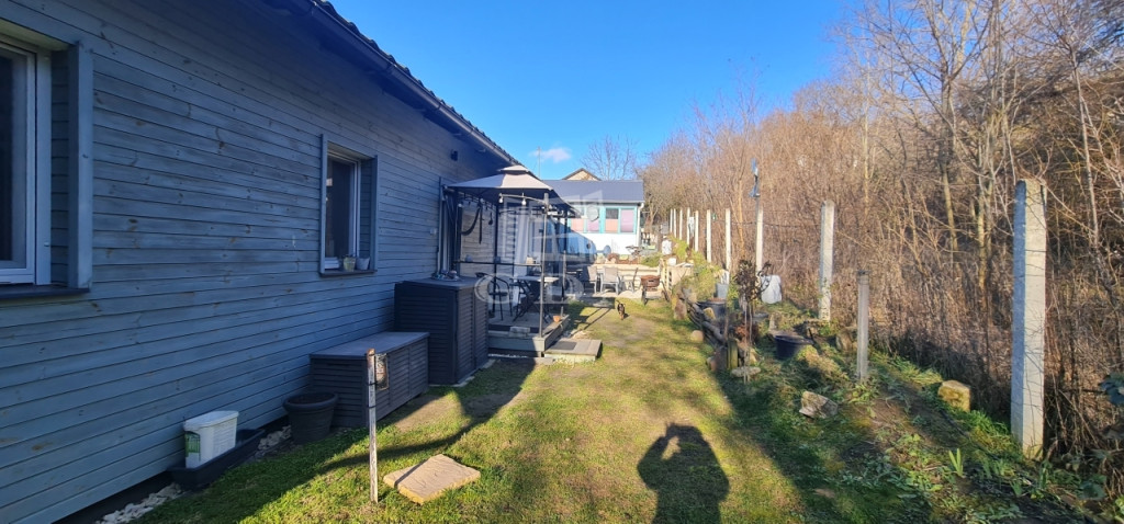 A telken meg egy 25 nm-es könnyűszerkezetes technológiával épült különálló, teljes mértékben lakhatóvá átalakított ház található / szoba-konyha-fürdőszoba / fűtésé elektromos radiátor, a meleg vizet villany bojler biztosítja.