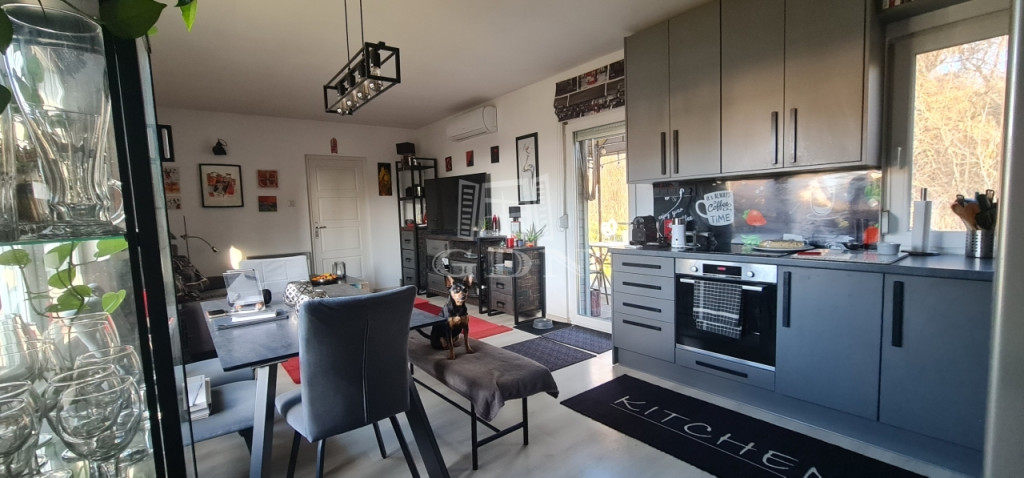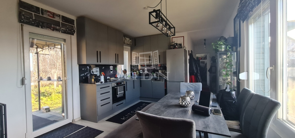 A ház 60 nm-es három szobás, amerikai konyhás, 2021-ben könnyűszerkezetes technológiával, fa szerkezettel épült, műszakilag és esztétikailag teljesen új.
