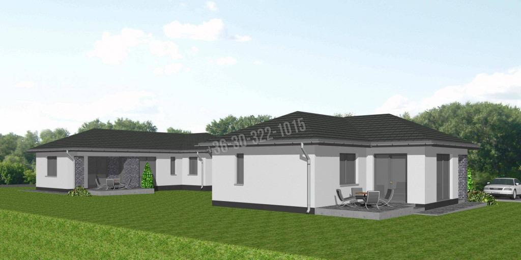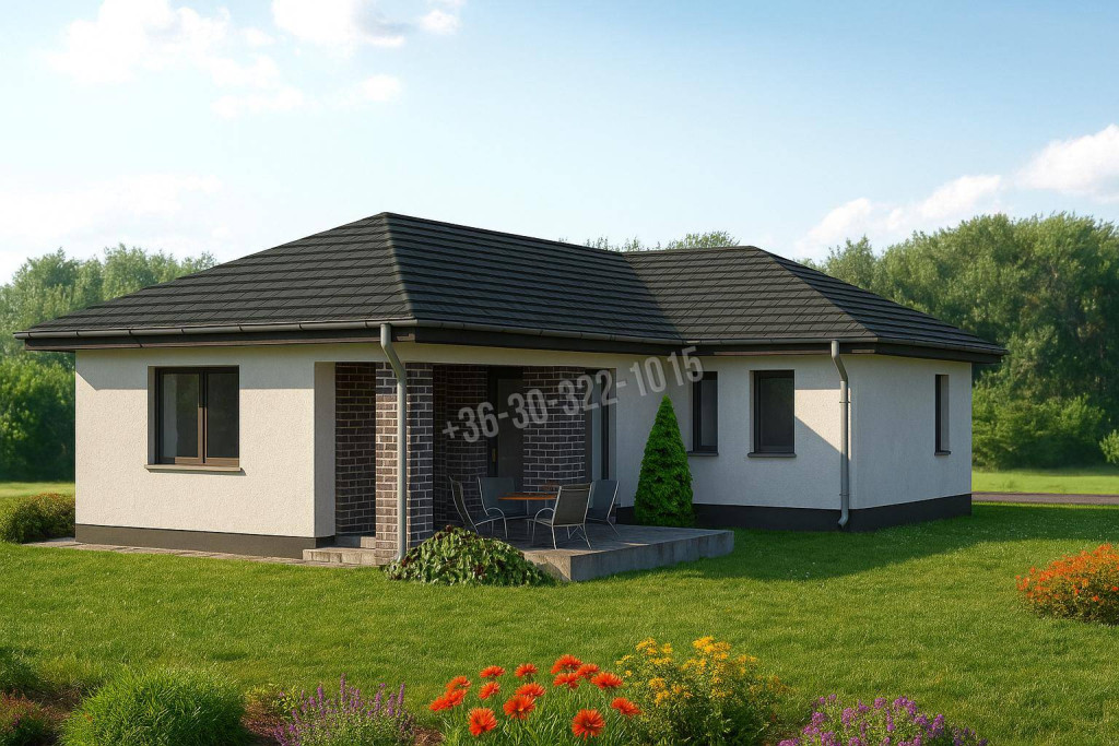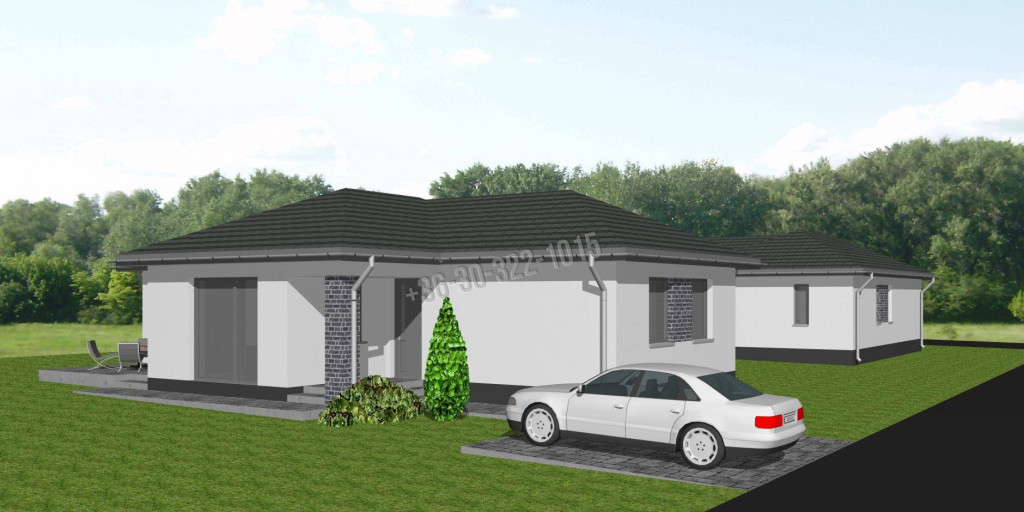 • Épület típusa: egyszintes, 3 hálószoba + amerikai konyhás nappali, terasszal