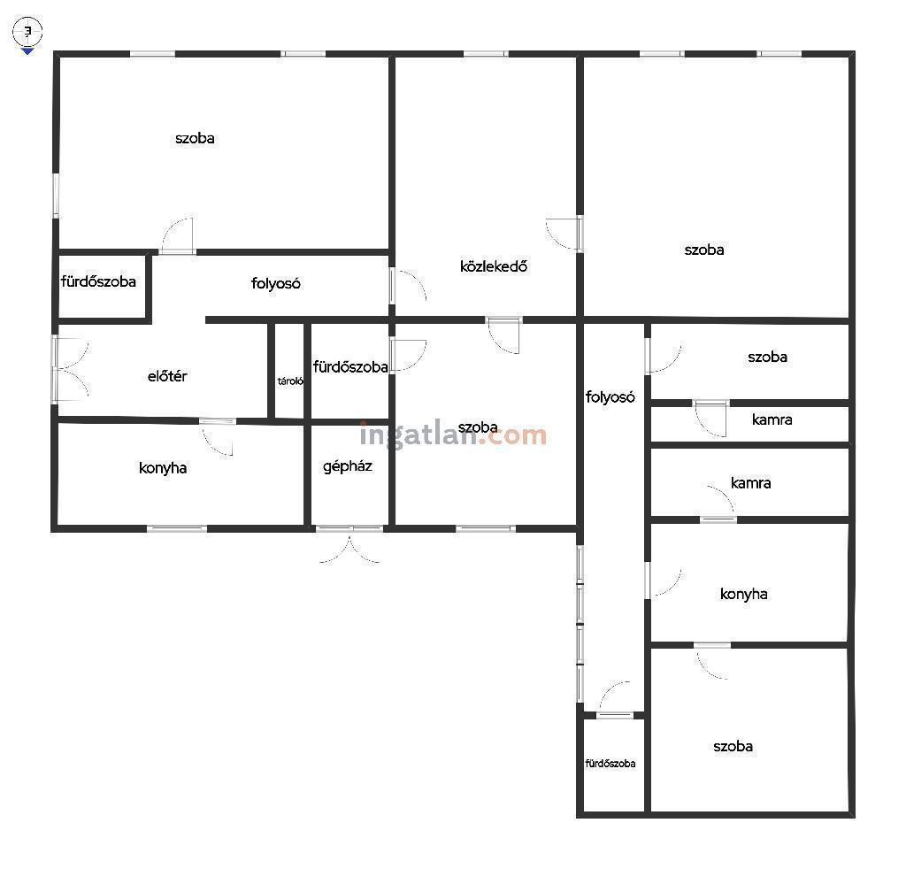 A ház vályogfalazatú, négy és fél szobás, két konyhás, három fürdőszobás.