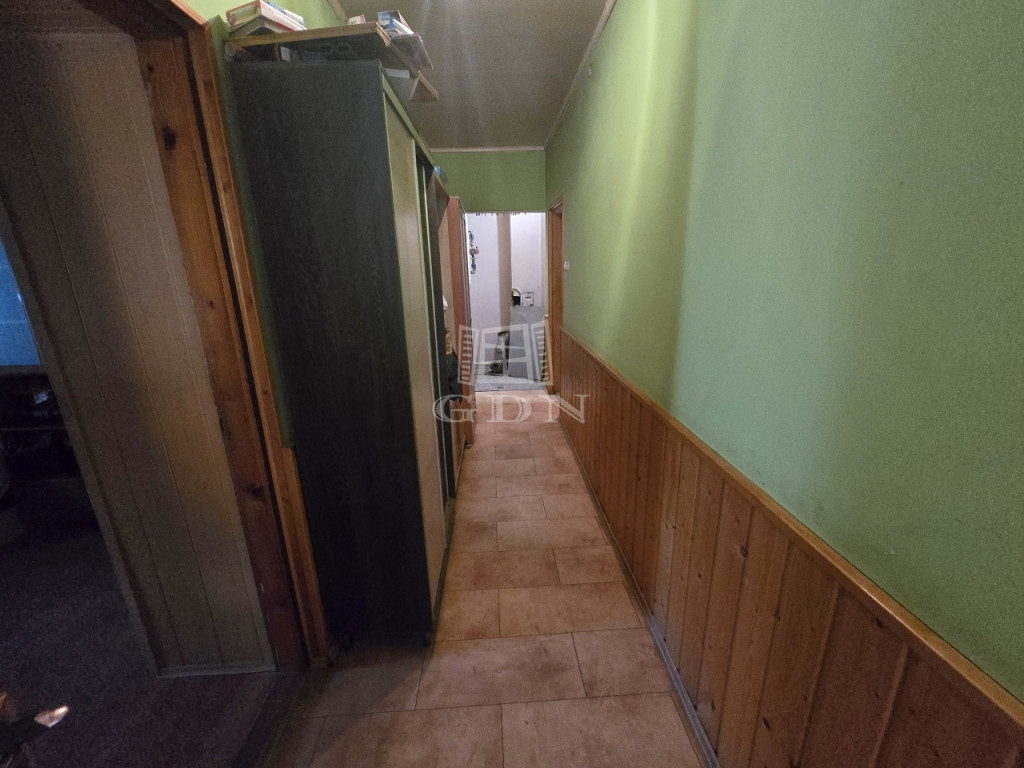 Az ingatlan 135 m²-es, vegyes falazatú családi ház, mely kialakításának köszönhetően kétgenerációs életformára is kiválóan alkalmas. A két lakrész teljesen külön bejárattal rendelkezik, ugyanakkor egy középső ajtón keresztül az épületen belül is van átjárási lehetőség. Az első részben három szoba, tágas konyha étkezővel, folyosó, külön WC, fürdőszoba, valamint a nagyobb szobából nyíló két gardróbhelyiség található. A ház második lakrésze egy közlekedőből, két szobából, főzőfülkéből és fürdőszobából (WC-vel) áll, így akár önálló lakrészként is funkcionálhat. A nyílászárók részben fa, részben műanyag szerkezetűek, a fűtés pedig vízteres kandallórendszerrel megoldott.