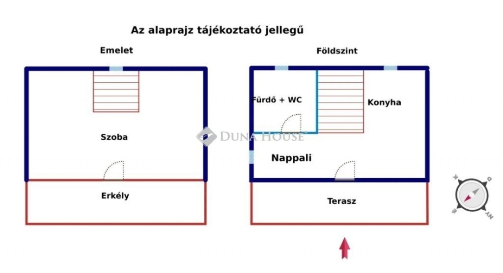 A házba a teraszon keresztül juthatunk be, ahol egy nappali és konyha fogad minket. Innen nyílik a fürdőszoba és a WC. Az emeletre felérve a hálószobába érkezünk, amelyhez erkély is tartozik. A telken víz és villany, a gáz pedig az utcában elérhető.