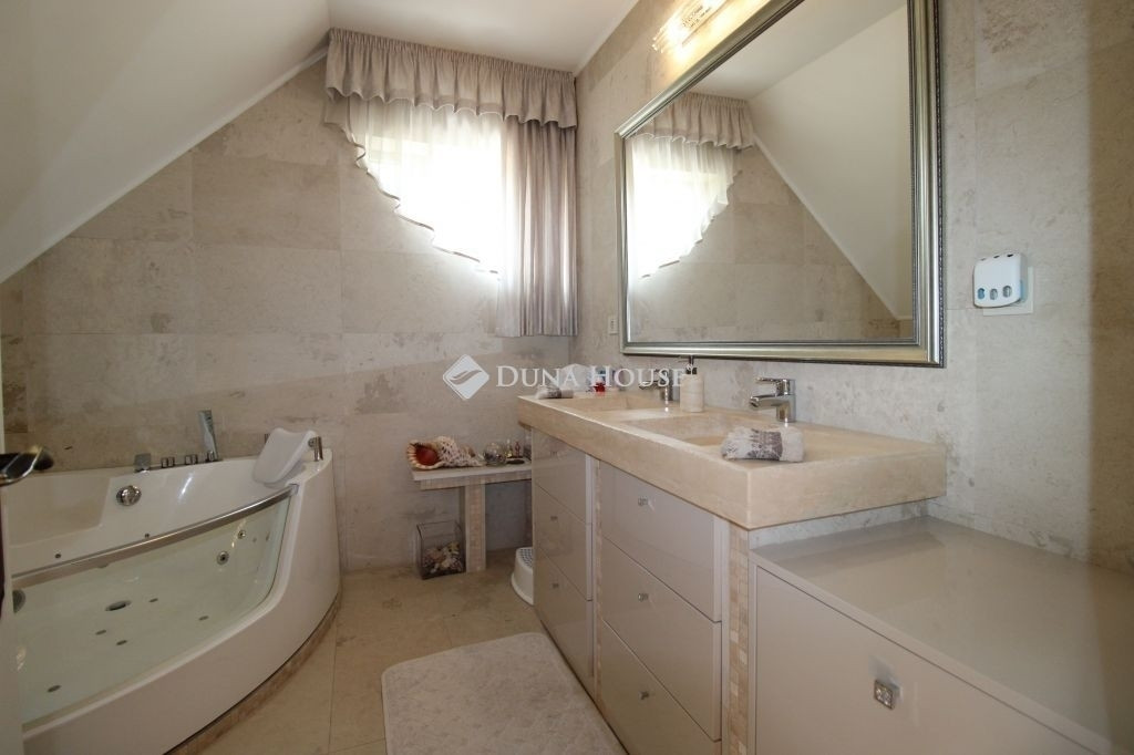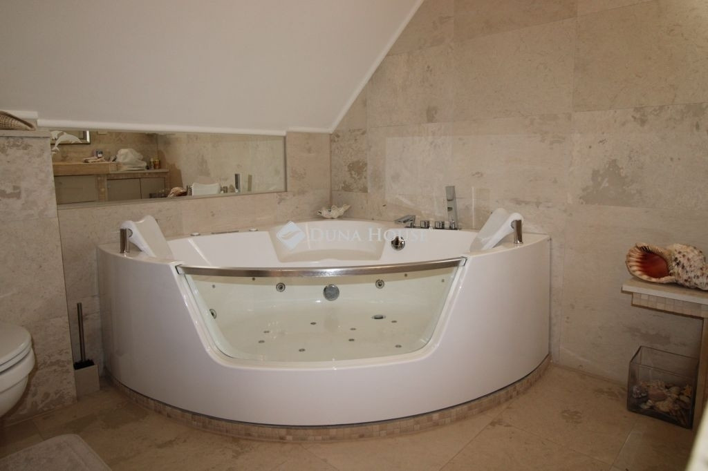 Csendes, zöldövezeti környezetben kínáljuk ezt a 150 m²-es, igényes kivitelezésű, 944 m²-es telken álló otthont. A ház elegáns, funkcionalitással és okos megoldásokkal teli: travertin fürdőszobák, márvány kerítéspárkányok, egyedi bútorok, tágas nappali, modern konyha és dolgozószoba várja új tulajdonosát.
