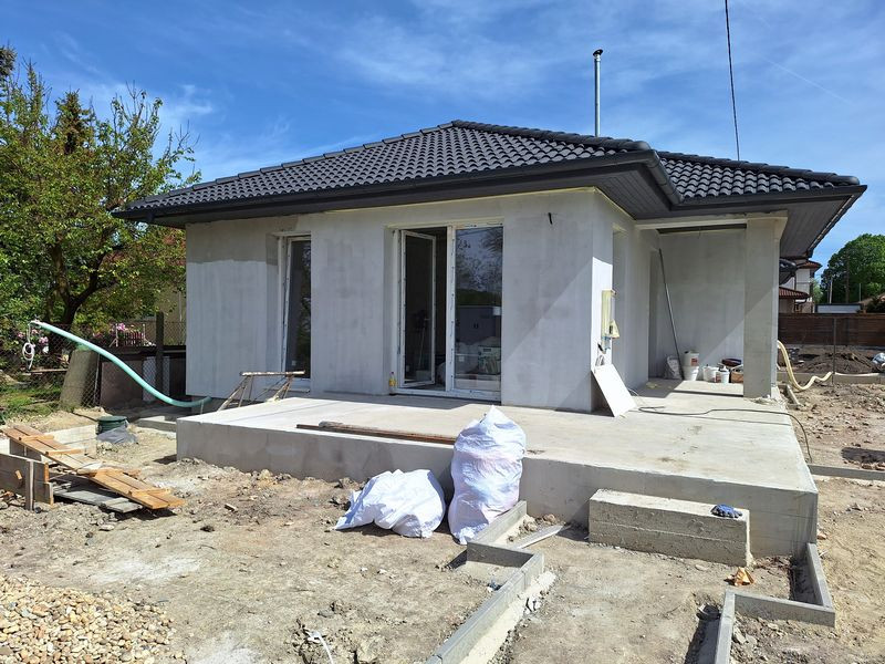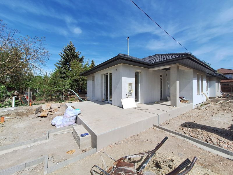Rövid műszaki ismertető: Beton alap. Porotherm 30-as tégla főfalak, 15cm-es szigeteléssel. Ytong válaszfalak. Fa födém, 25cm-es fújt cellulóz szigeteléssel. A tető betoncserép fedésű, antracit színben. A külső nyílászárók műanyag szerkezetűek, 3 rétegű szigetelt üvegezéssel, rejtett redőnytok beépítéssel (redőny és szúnyogháló nincs az árban).