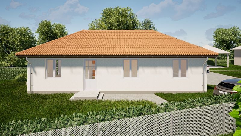 Rövid műszaki ismertető: beton alap. Porotherm 30 okostégla főfalak, 15cm-es szigeteléssel. Ytong válaszfalak. Fa födém, 25cm-es fújt cellulóz szigeteléssel. A tető betoncserép fedésű, antracit színben. A nyílászárók műanyag szerkezetűek 3 rétegű szigetelt üvegezéssel, rejtett redőnytok beépítéssel.