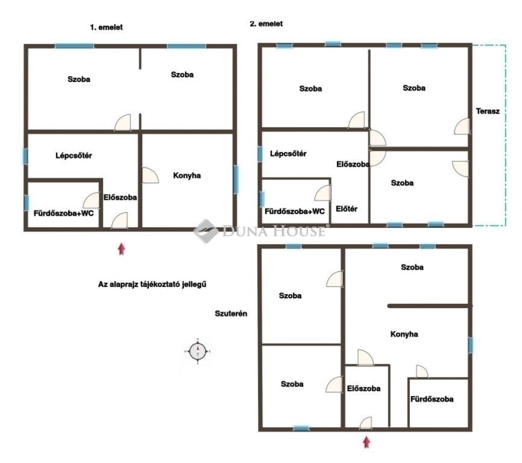 1. Szuterén - A többi lakótértől szeparáltan, külön bejárattal, saját konyhával, fürdőszobával és három szobával rendelkezik