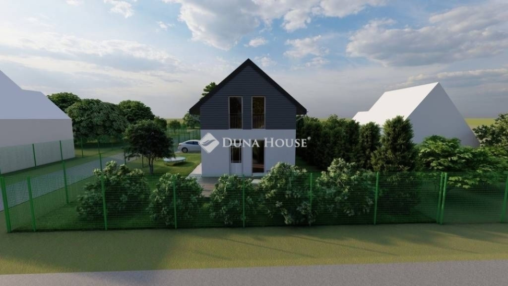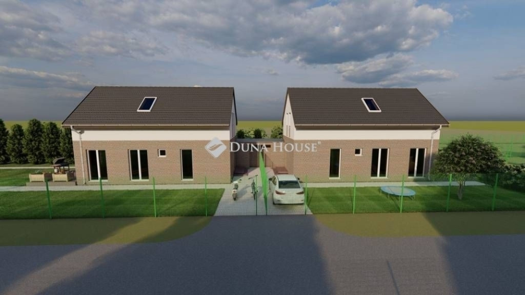 Egy telken belül - megosztott használatban - két egyforma ház épül. Ehhez az ingatlanhoz 234 négyzetméter alapterület tartozik. A telken elhelyezkedő ház 103 négyzetméter. Két szintet kapott. Az alsó szinten kialakításra került egy nappali + konyha, egy szoba, fürdőszoba + WC, közlekedő, illetve egy kamra. A nappaliból nyílik a terasz, ami 18 négyzetméteres. A lépcsőn feljutunk a tetőtér közlekedőjébe, ahonnan külön nyílik két szoba, illetve egy zuhanyzó + WC.