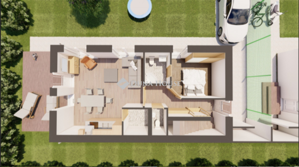 Szegeden - Marostő részén, kulcsrakész, új építésű ház eladó!Szeged városának Újszeged-Marostő részén - Szeged úgynevezett Rózsadombján - új építésű családi ház eladó! A városrész jellegzetessége, hogy a környék nagyon szép, igényes új építésű házakkal van körülvéve.Egy telken belül - megosztott használatban - két egyforma ház épül. Ehhez az ingatlanhoz 234 négyzetméter alapterület tartozik. A telken elhelyezkedő ház 103 négyzetméter. Két szintet kapott. Az alsó szinten kialakításra került egy nappali + konyha, egy szoba, fürdőszoba + WC, közlekedő, illetve egy kamra. A nappaliból nyílik a terasz, ami 18 négyzetméteres. A lépcsőn feljutunk a tetőtér közlekedőjébe, ahonnan külön nyílik két szoba, illetve egy zuhanyzó + WC. Ajánlom mindazoknak, kik egy nagyobb város külső, igényes részében szeretnének maguknak új, modern otthont. Lévén hogy egymás mellett van két egyforma ház, akár generációk szomszédos összeköltözését is lehetővé teszi, de persze külön-külön is megvásárolhatók.A kulcsrakész állapot tartalmazza a hideg-és melegburkolatokat, színre festést, szanitereket, kiállásokat, villanykapcsolókat, napelem rendszer betelepítésének az előkészítését. Ahogy a látványtervek is mutatják, több homlokzati szín közül is lehet választani. A vételár részét képzi még a tereprendezett udvar, térkövezett járda, autóbeálló, kerítés, valamint kapu. További, egyedi igények esetén is nyitott a kivitelező.Pár szó a szerkezetről:A sávlapok betongyári betonból készültek. Vasbeton lábazatra került a falazás Porothem 30 NF falazóblokkokból. Födém E jellegű vb. gerendák, köztük födém béléstestekkel. A gerendavégek a vb. födém koszorúba lettek ágyazva. A falazat oldalirányú stabilitásáért 5 db helyszínen öntött, függőleges vb. pillér gondoskodik.A tetőszerkezet gomba-és tűzmentesített szerrel kezelt fenyő, ácsolat szarufa párokkal erősítve. A tetőhéjazat TONDACH CLASSIK tetőcserép. A homlokzat 15 cm keresztmetszetű szigeteléssel lett ellátva. A tetősík belső szigetelése 2 réteg 15 cm kőzetgyapot. Külső nyílászárók SHÜCO 3 rétegű üvegezés. Az árnyékolásért motoros, alumínium redőnyök felelnek.A padló hegesztett, háló erősítésű szerelőbeton. Rajta talajnedvesség elleni 4 mm szigetelőlemez, 10 cm EPS 100 lépésálló hőszigetelő, fóliaterítés, rajta hegesztett háló, majd az ezekre tekert padlófűtés cső, s végül a 8 cm aljzat beton.Gépészet hűtést-fűtést, használati melegvizet levegő-víz hőszivattyús rendszer szolgáltat.A képek a kivitelezésről folyamatosan frissülnek. Kérdés vagy megtekintési szándék esetén, kérem keressenek bizalommal!