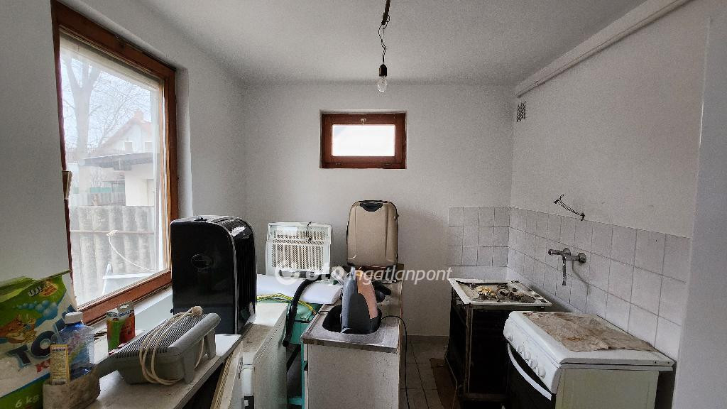 Közlekedőn keresztül juthatunk a bejárati ajtajával szemben fekvő fürdőszobába, bal oldalon nyílik a szoba (13,6 m2) és innen külön helyiségként a konyha. A fűtés itt még régebbi megoldással történik FÉG kazán segítségével, radiátoros hőleadással, a melegvizet pedig szintén egy FÉG berendezés biztosítja. A nyílászárók fa anyagból készültek, jól zárnak. Kétgenerációs lakhatás esetén a melléképület teljes körűen ki tudja szolgálni a benne lakókat, vagy akár a szoba és a konyha összenyitásával nyári és téli baráti összejövetelek, kártyapartik, szülinapok kiváló helyszínéül szolgálhat.
