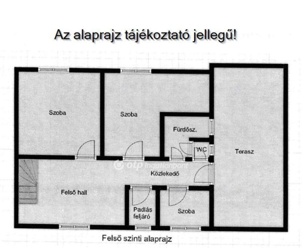 A két lakószintes, tégla épület az 1939-ben épült. A kor elvárásainak megfelelően, a földszinten tágas előtér, hatalmas nappali szalon, egy belső udvari lakószoba, cselédszoba, konyha, kamra, előszoba, wc, és korábbi szén tárolókból kialakított kamra és fürdőszoba vannak. Az emeleten előtér, közlekedő, 3 szoba, fürdőszoba, padlásfeljáró helyiségek vannak. Innen érhető el az impozáns emeleti terasz, illetve a padlásfeljáró a beépíthető tetőtérbe vezet, ahol további szobák alakíthatóak ki. A felső szinten a villany hálózatot és a fürdőszobát korszerűsítették a 90-es években. a szobákban parketta, a többi helyiségben hidegburkolat van. Az otthon melegét gázkazán biztosítja, radiátoros hőleadással, plusz a földszinti nappaliban egy kandalló is rendelkezésre áll.