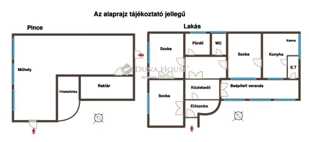 Két szint: 163 m²-es magasföldszint + 105 m²-es pince
