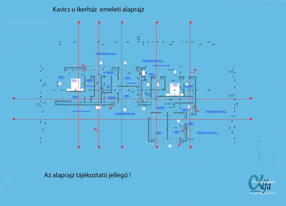 - Az ikerház építőmesteri munkáinak komplex szerkezete, gipszkarton válaszfalazással, téglafelületek vakolással, födémek hő-, illetve hangszigetelésével.