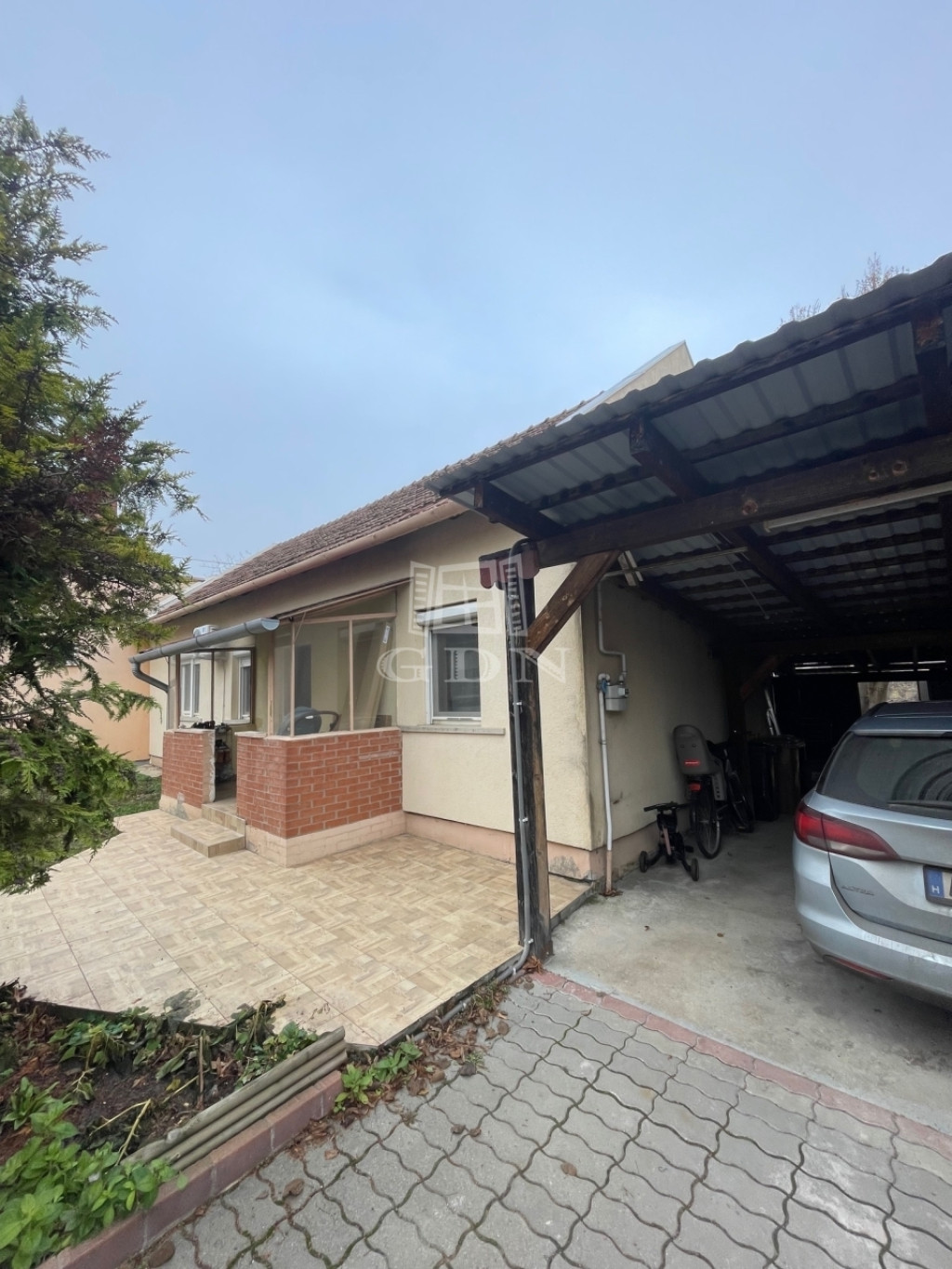 A ház mellett saját fedett autóbeálló található.