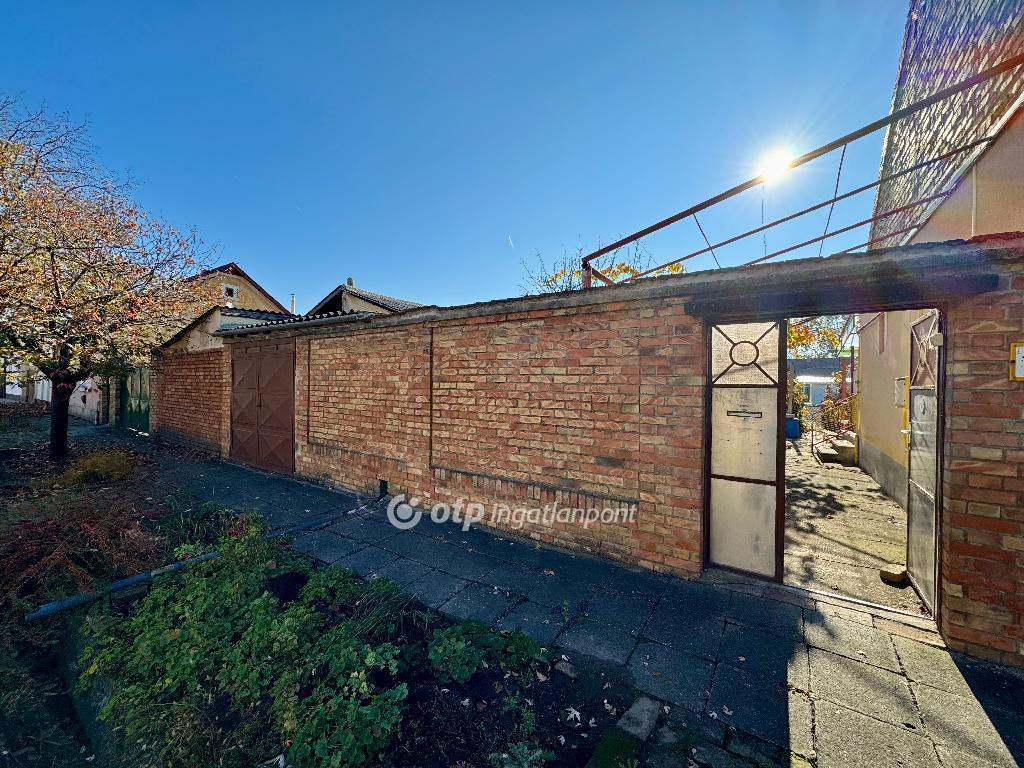 Szeged, Kecskés István-telepen eladó családiház 959 nm telken melyen egy 60 nm főépület található, melyben két szoba, konyha, fürdőszoba +WC, kamra és terasz szolgálja a kényelmet, továbbá egy 35 nm-es melléképület, melyben 16 nm utcára nyíló garázs, udvari nyári konyha teljes közművel és két kamra kapott helyet. Mind két épületben az otthon melegét konvektoros fűtés biztosítja.