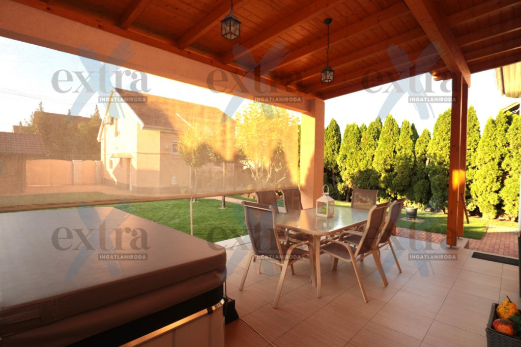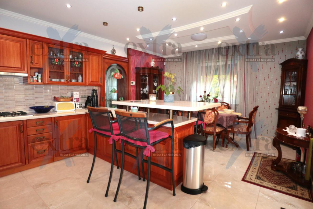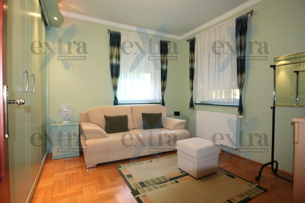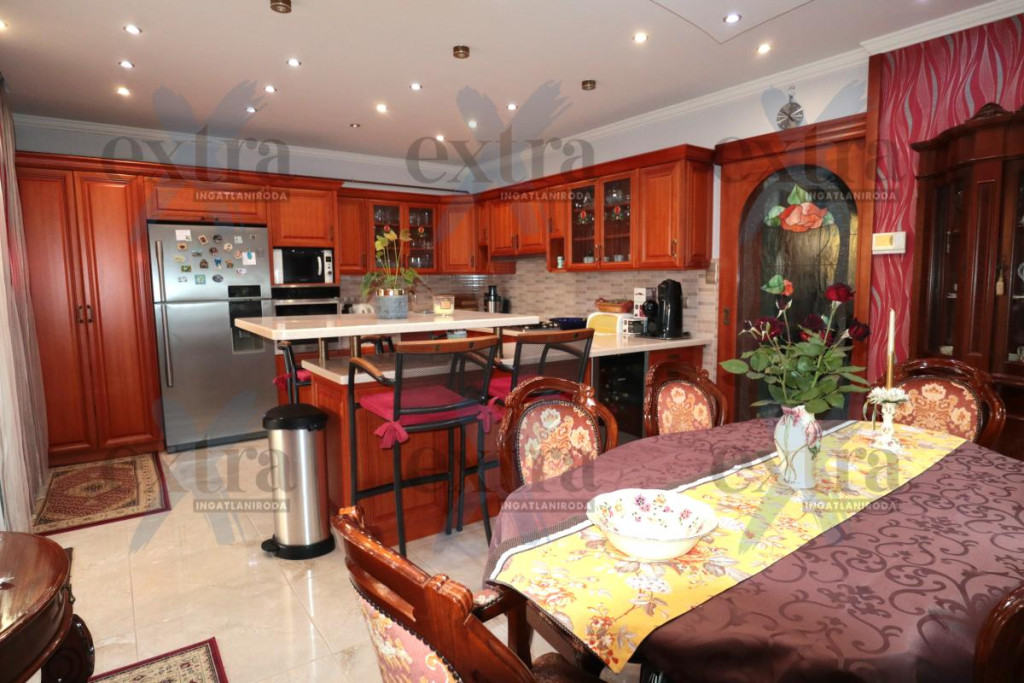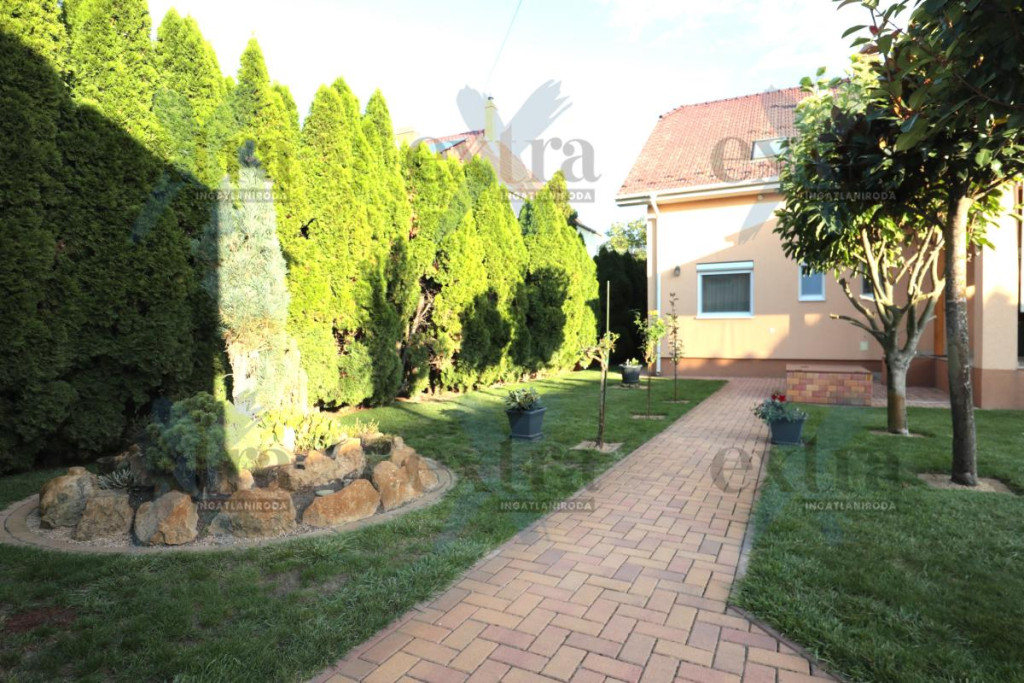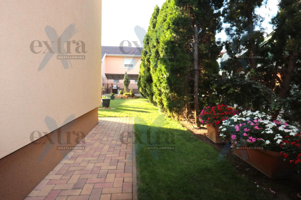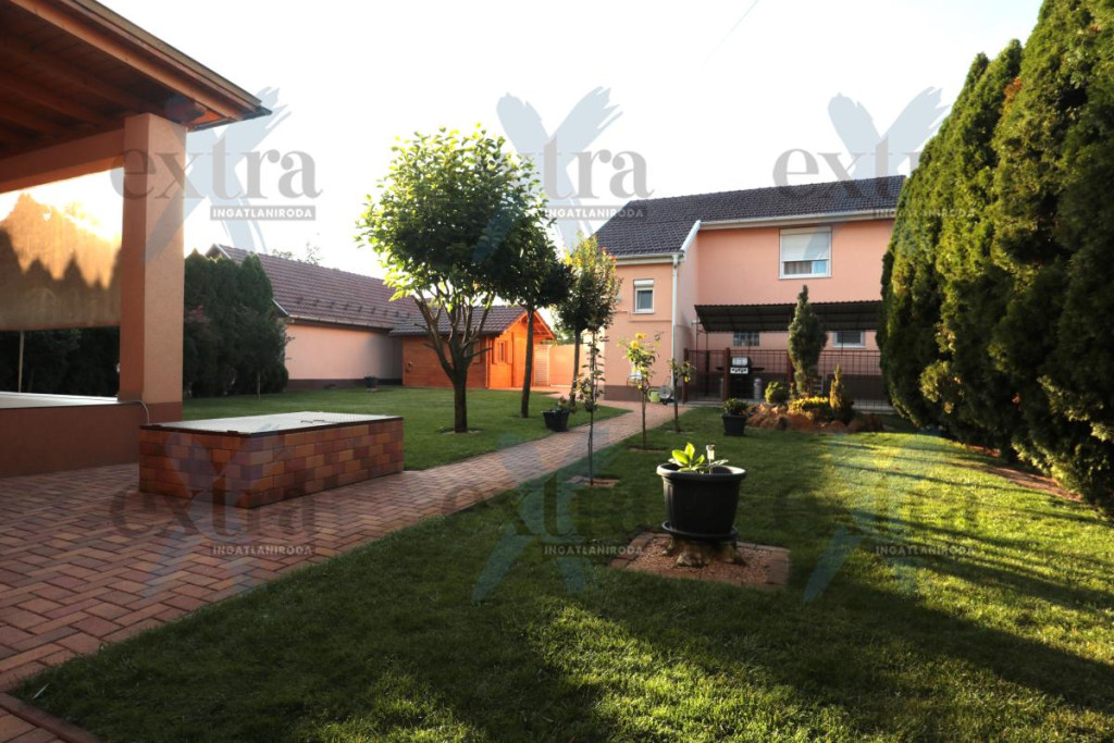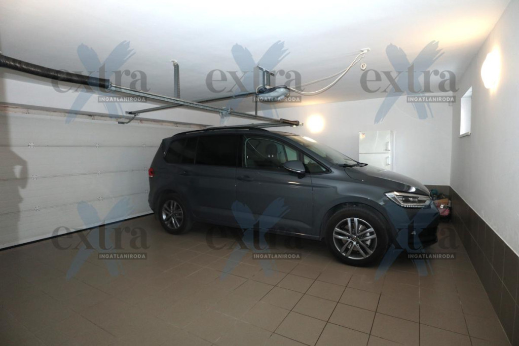 Gépkocsi tárolás: 33 m2 dupla garázs elektromos kapuval. A telken 16 m2 erdélyi faház, automata öntözőrendszer fúrt kúttal, parkosított udvar robotfűnyíróval és kutyakennel. Csendes utcában, ZÖLDÖVEZETI környezetben, jó közlekedéssel. Új építésű, igényes téglalakás beszámítása lehetséges.