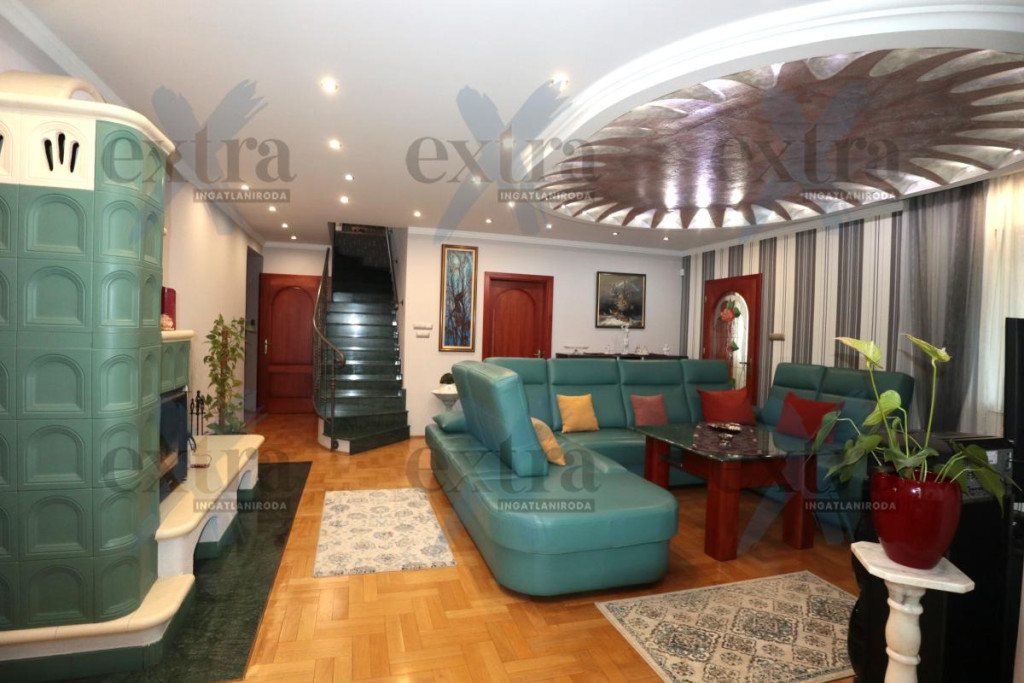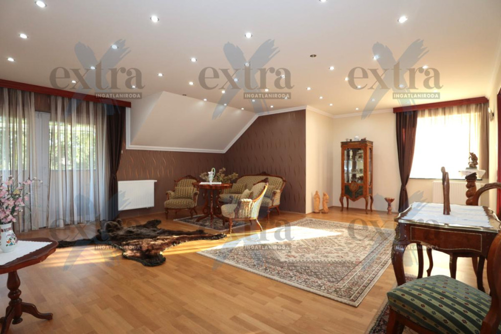 - 3 nappali + 5 hálószoba + 3 fürdő + konyha, étkező + gardrób + wc