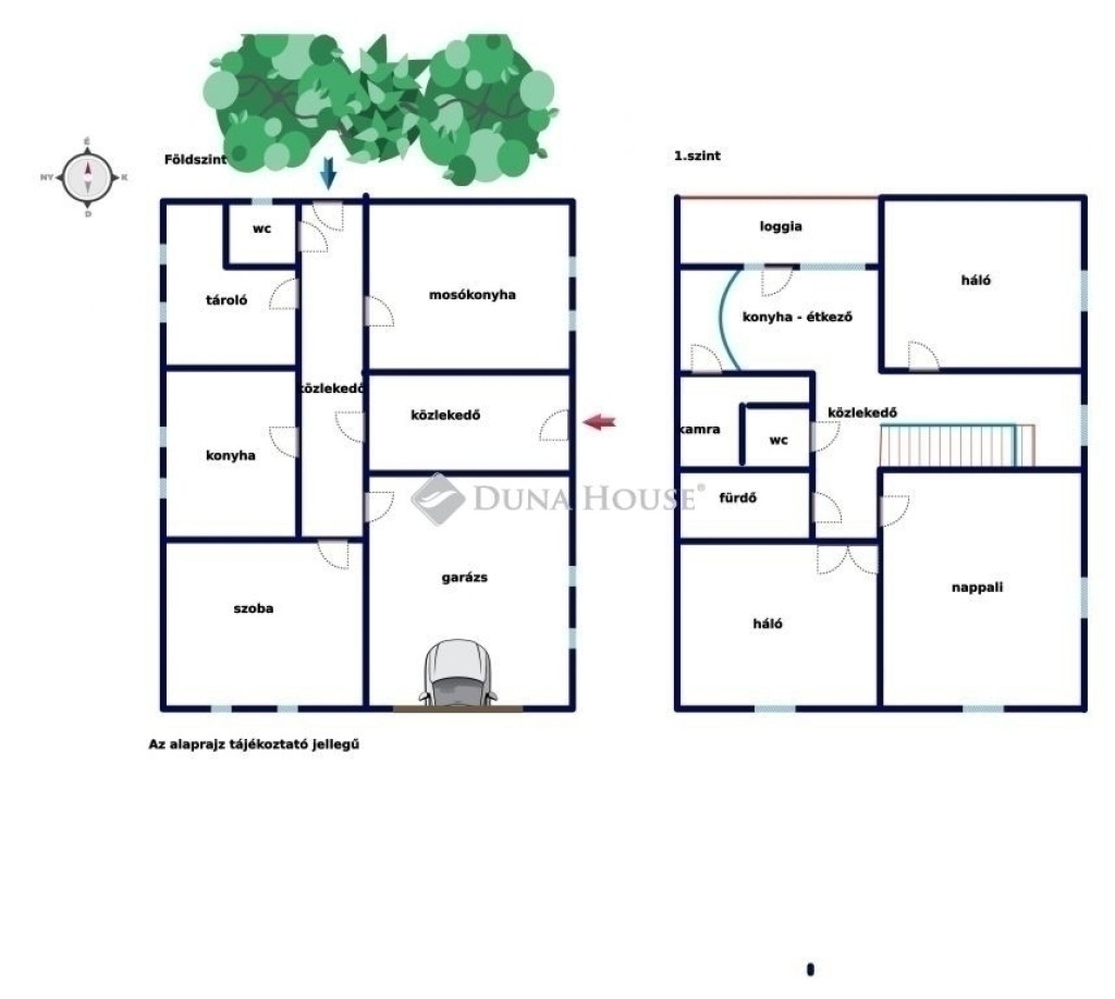 Az aszfaltozott utcáról nyíló kapun keresztül juthatunk be a rendezett, parkosított udvarra. A 192 m2-es épület belső kétszintes, praktikusan elrendezett lakótérből áll.
