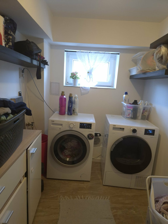 A nappali, emeleti folyosó és a hálószobák laminált padlóval, a lenti mellékhelyiség, és a konyha vinyl padló burkolattal ellátott. A fürdőszobában, a garázs felőli bejáratnál, valamint a mosókonyhában padlólap került lehelyezésre.