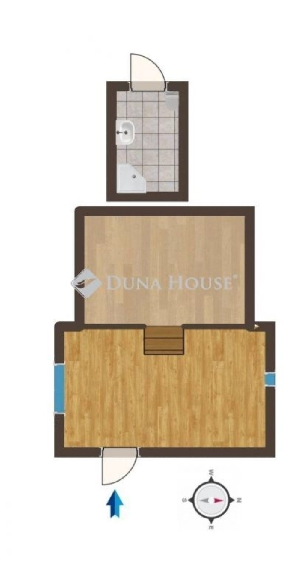 A szobában laminált padló, a fürdőben hideg burkolat található. A meleg vizet villanybojler biztosítja.