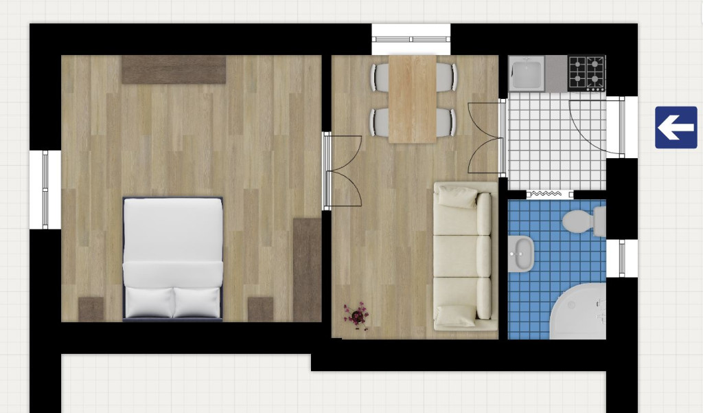 A szobák padlóburkolata laminált padló, a teakonyhában és a fürdőben hidegburkolat található.